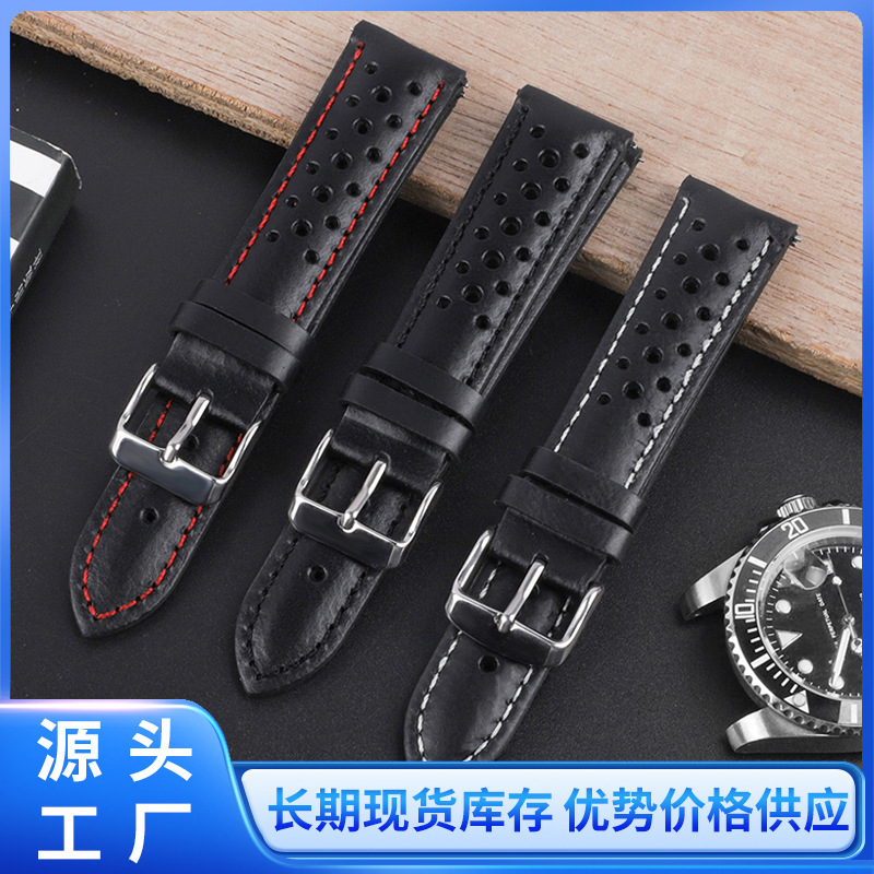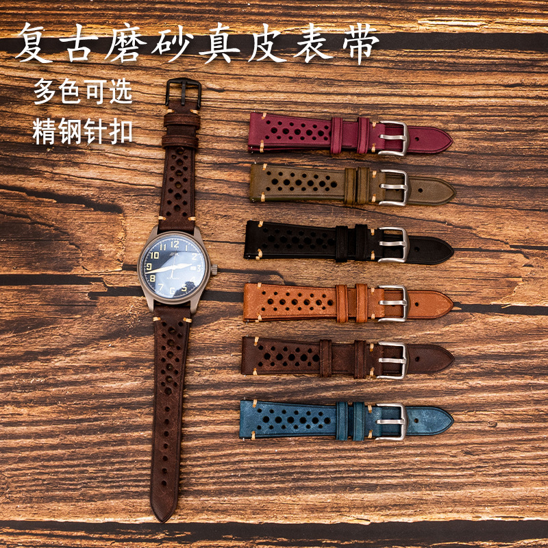 メンズレディース本革牛革個性多孔性真皮時計チェーン通気性精鋼針バックルは各種知能時計に適合しています。