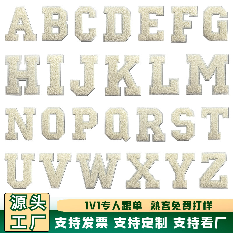 纯色系列26英文字母毛巾绣布贴服装鞋帽装饰辅料刺绣补丁贴