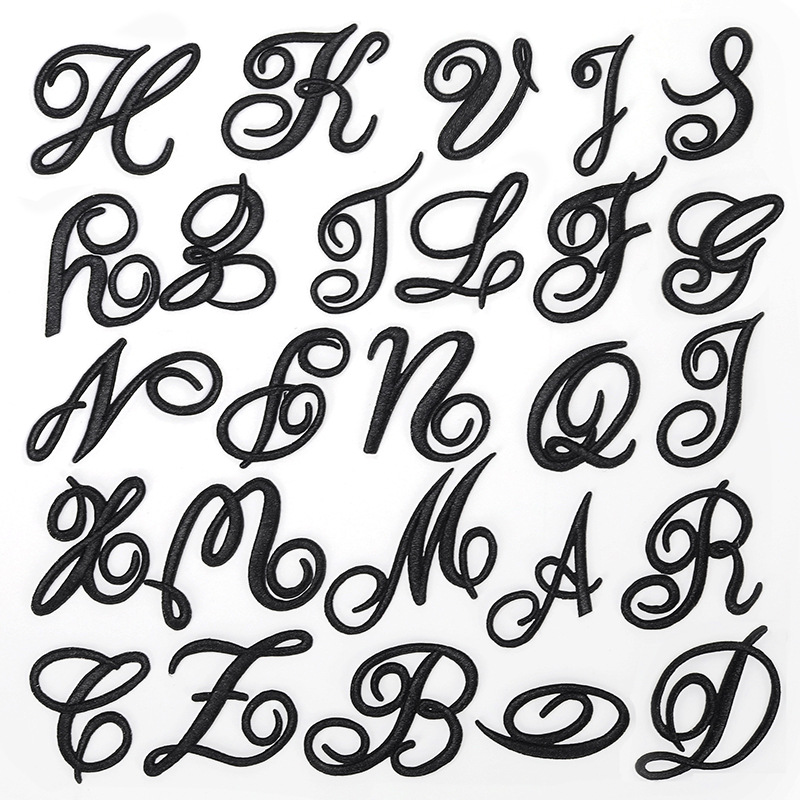 黒い大文字の草書の英語のアルファベットのセットのクロスボーダーの布は刺繍のラベルを貼って丁を貼って卸売りして帽子のリュックサックを飾ります。