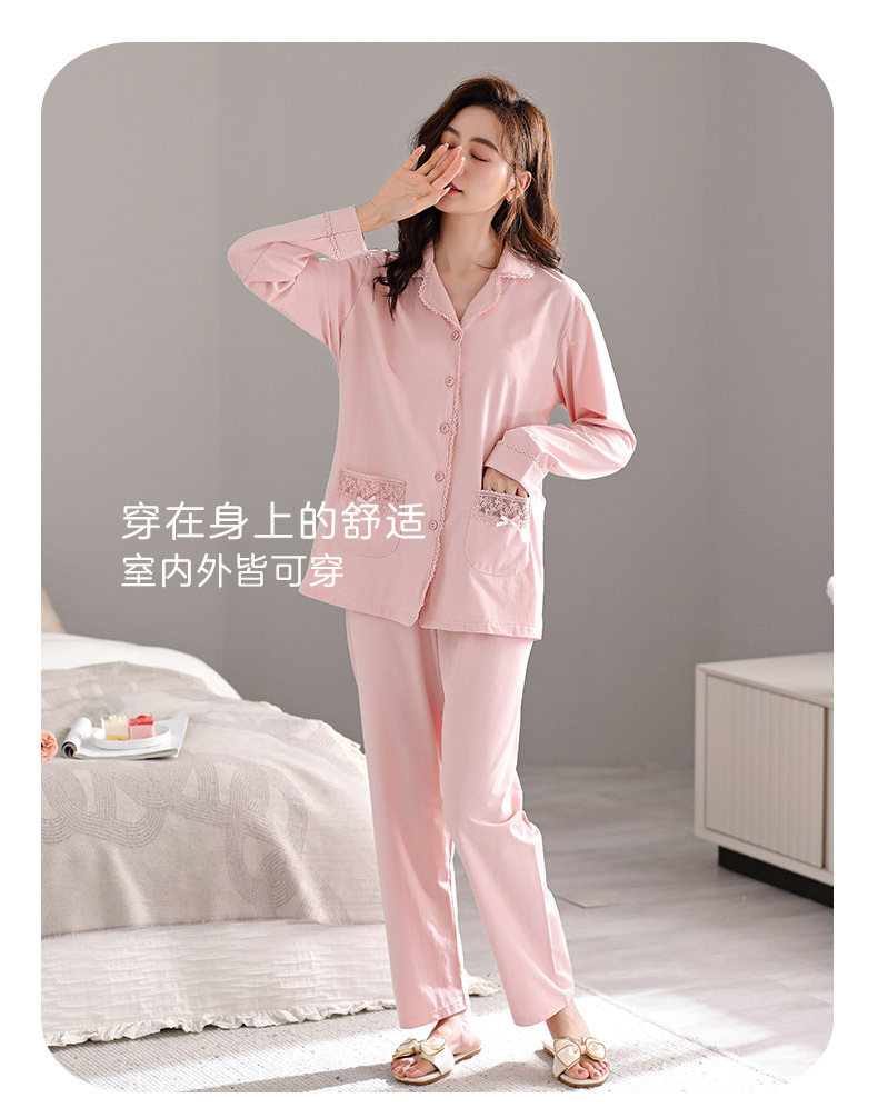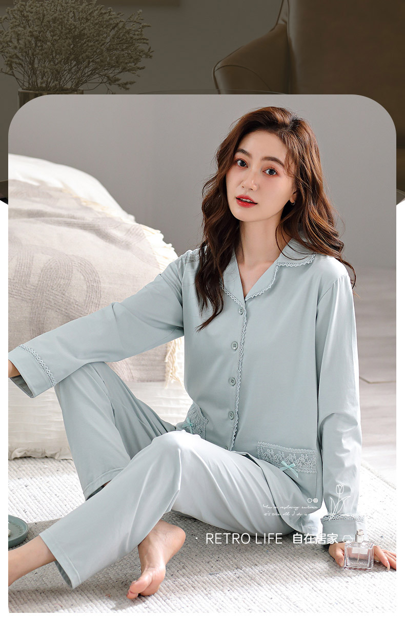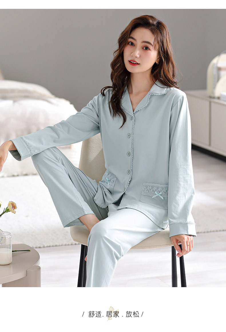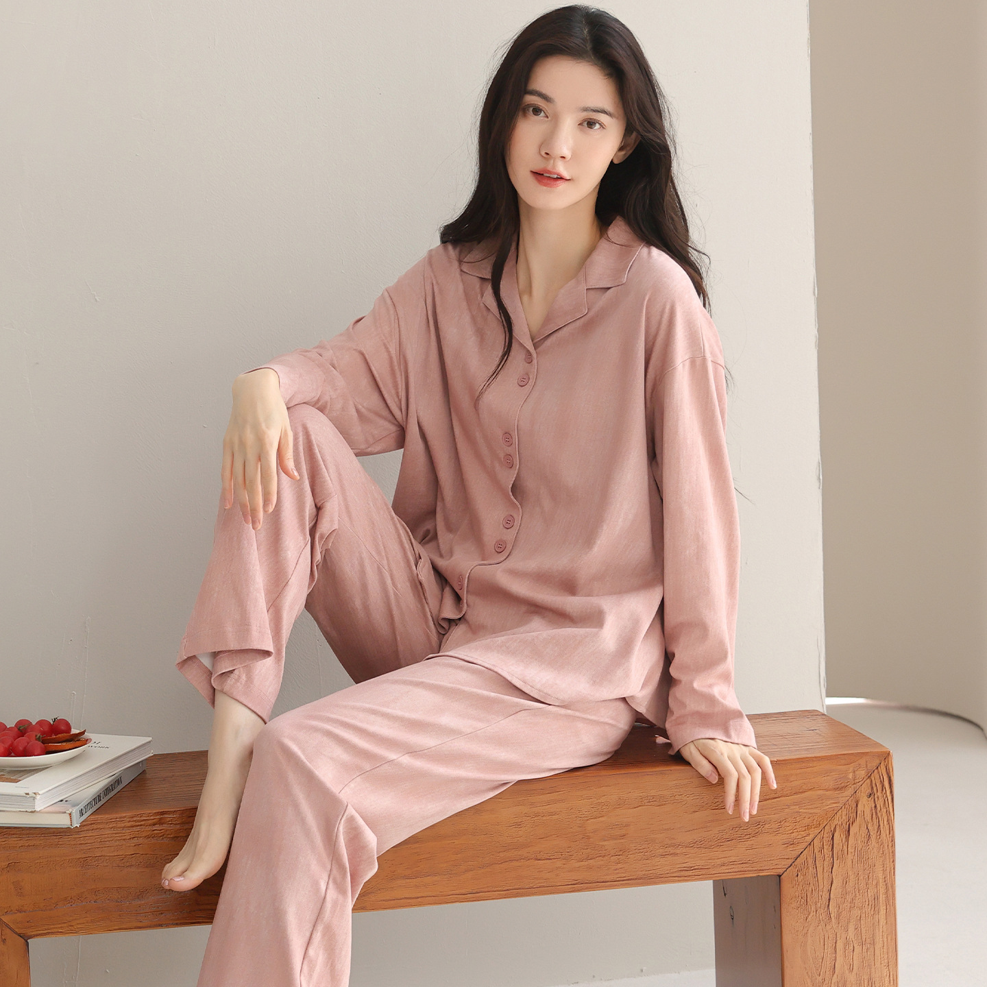 纯棉春秋款女士睡衣开衫少女生纯棉长袖长裤韩系家居服可外穿套装