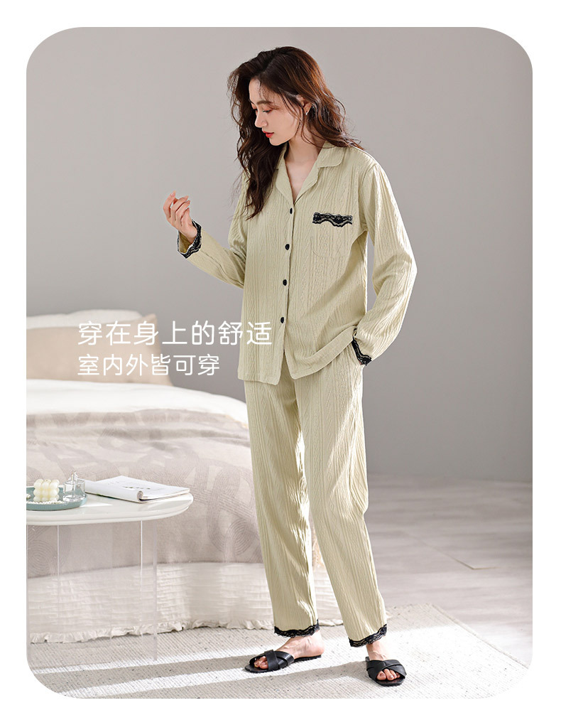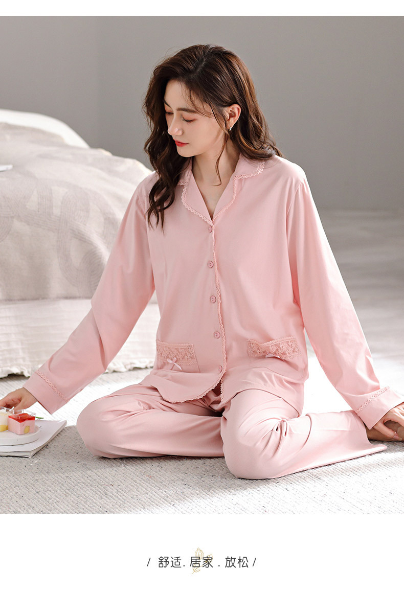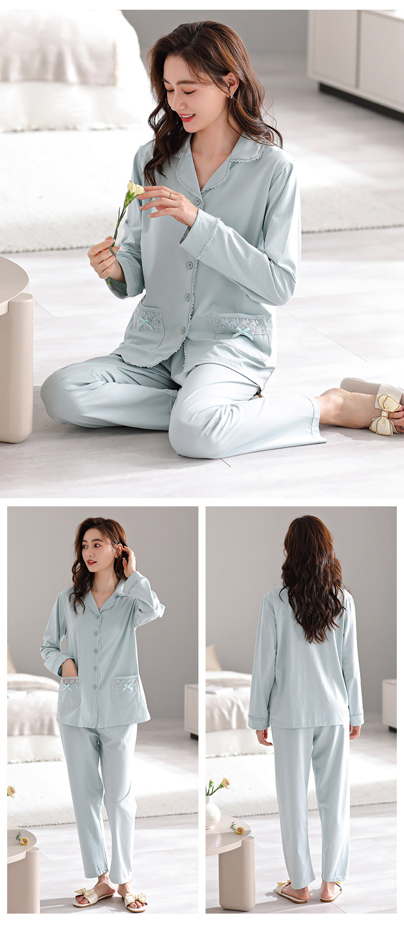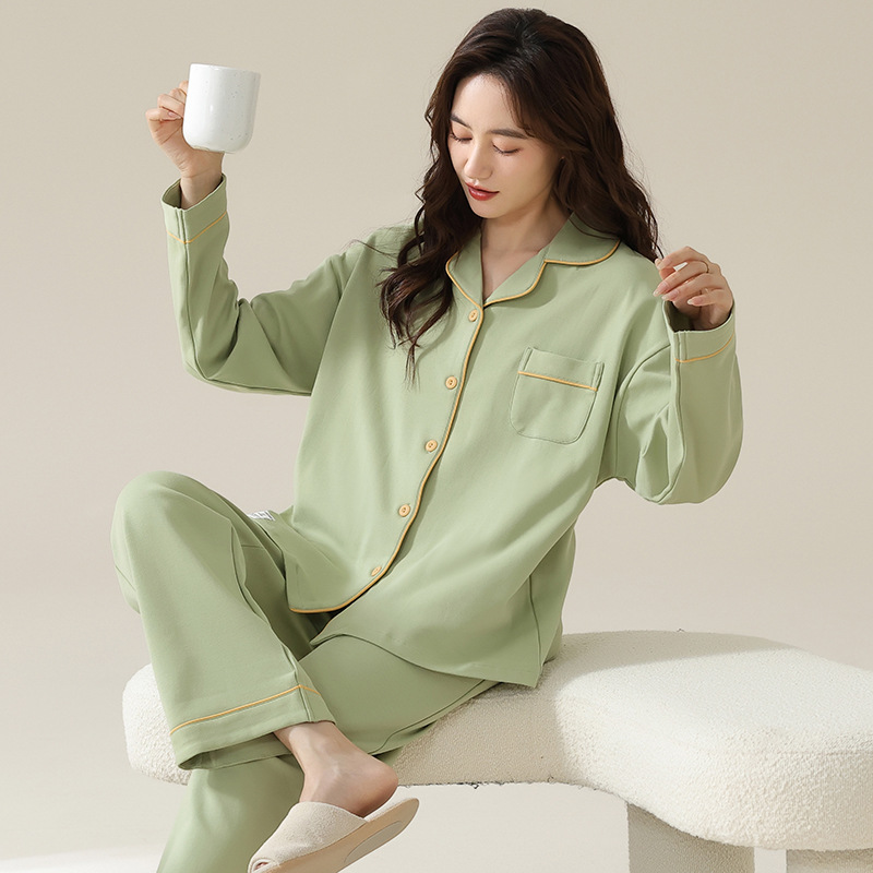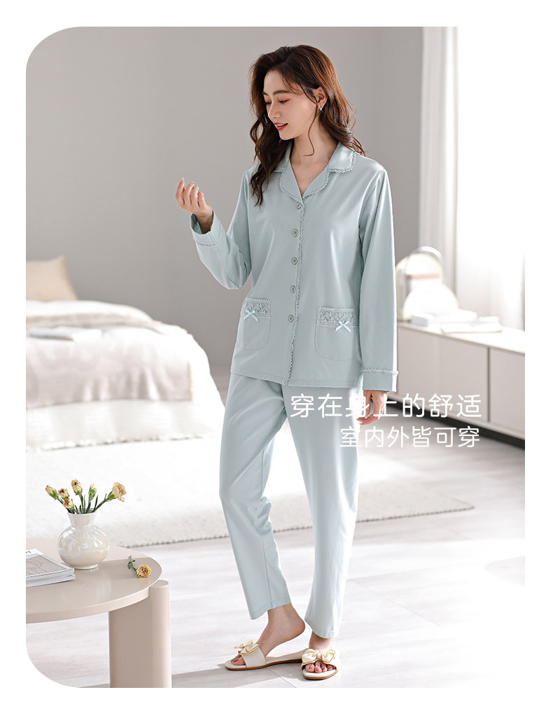 纯棉春秋款女士睡衣开衫少女生纯棉长袖长裤韩系家居服可外穿套装