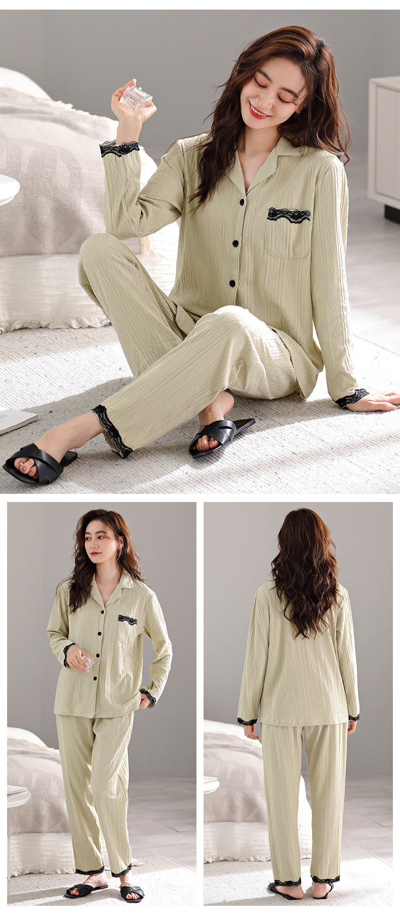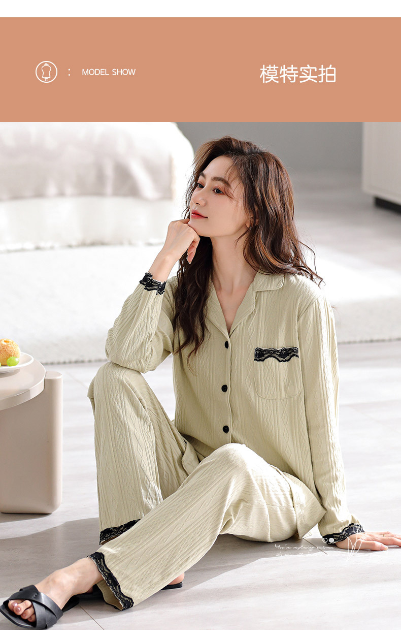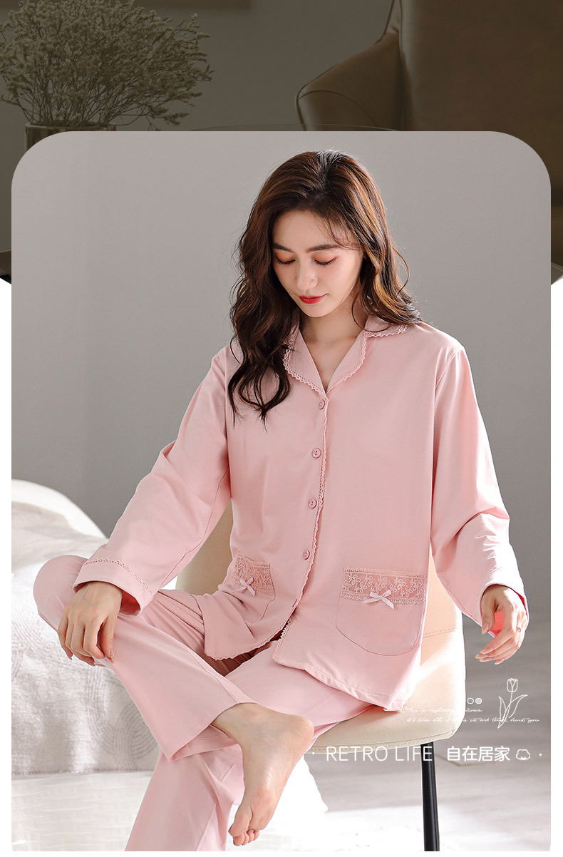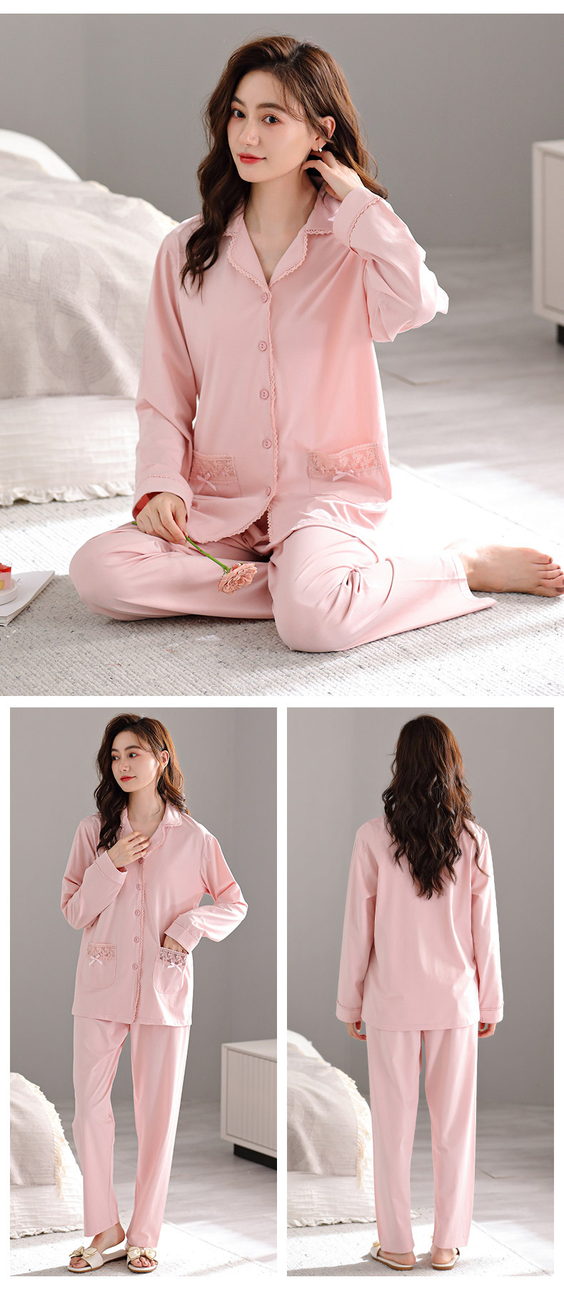 纯棉春秋款女士睡衣开衫少女生纯棉长袖长裤韩系家居服可外穿套装