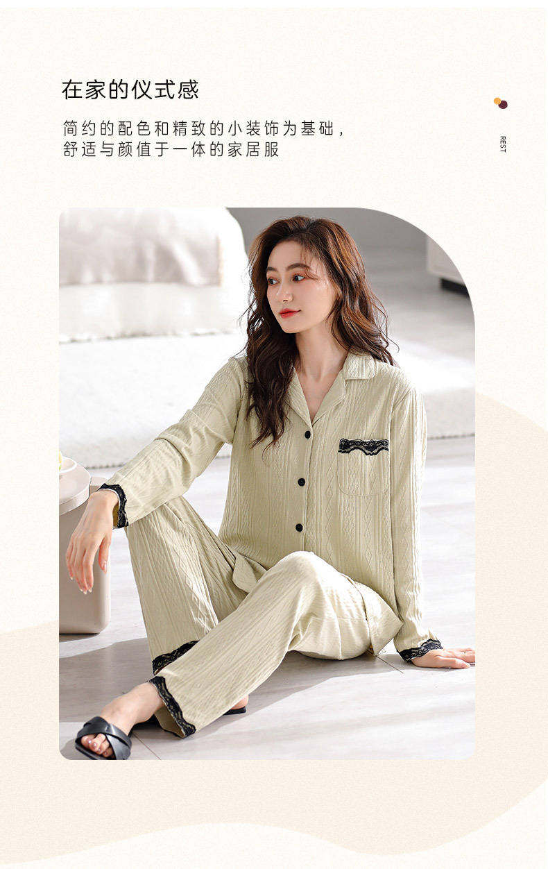 純綿パジャマ女性春秋タイプ秋の長袖小香風貴気質夏の薄いタイプは家の服を着ることができます。