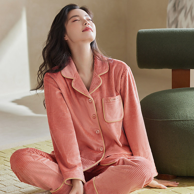 女士金丝绒秋冬睡衣长袖长裤套装春秋时尚高级感冬薄绒开衫家居服