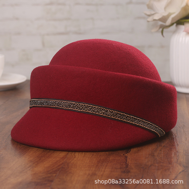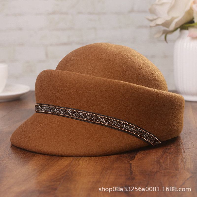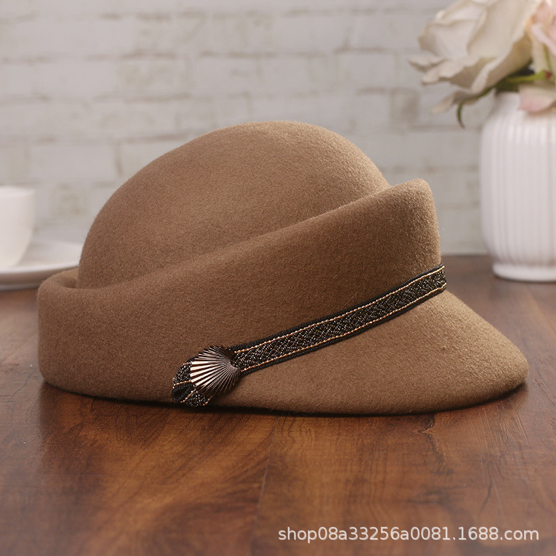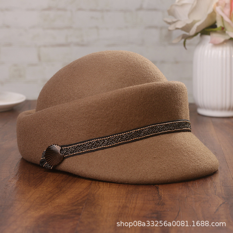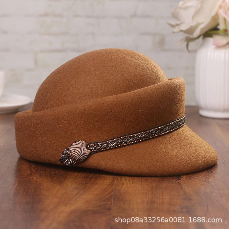 帽子の女性の秋冬の新型の騎士の帽子の英倫の復古のウールの定型の帽子のファッション的なウールの毛のドームのアヒルの舌の帽子