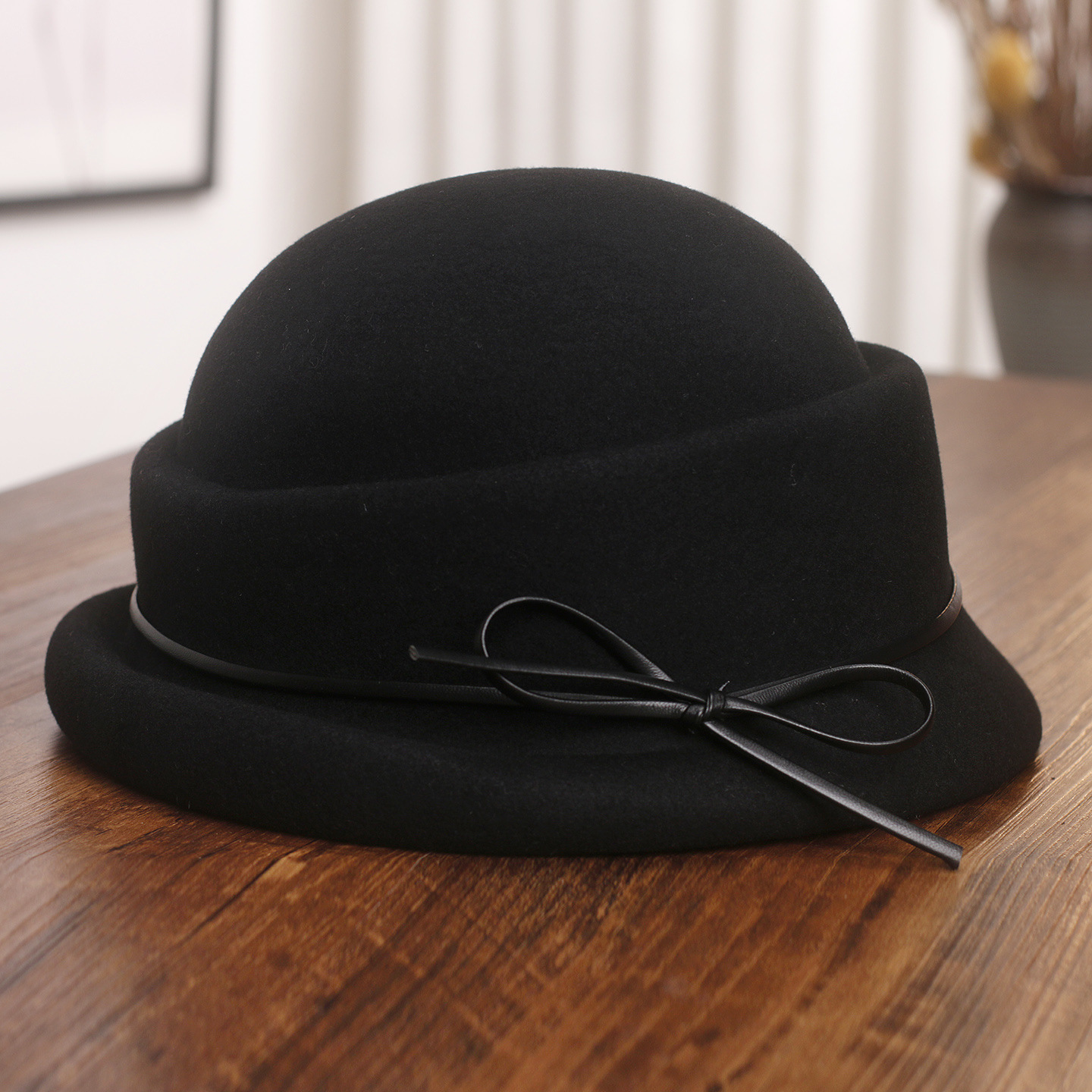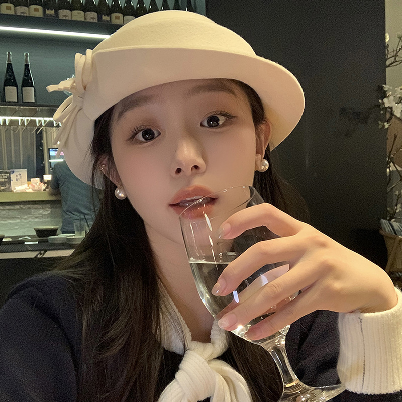 法式复古卷边羊毛礼帽女秋冬高级感细蝴蝶结渔夫帽千金风优雅盆帽