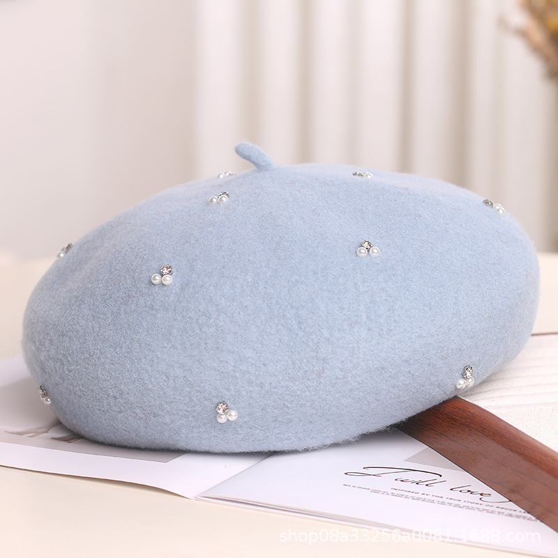 日本の手作りの真珠のドリルのウールのベレー帽の女性の秋冬の新型の八角形の画家の帽子のファッションの保温のつぼみのレースの帽子