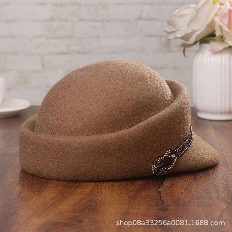 馬術帽秋冬新商品高級オーストラリア輸入ウールウール帽子ファッションドリル条優雅レトロ名媛フェルト帽子