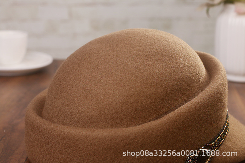 日系羊毛呢卷边渔夫帽女秋冬纯色百搭保暖盆帽显脸小气质卷边礼帽