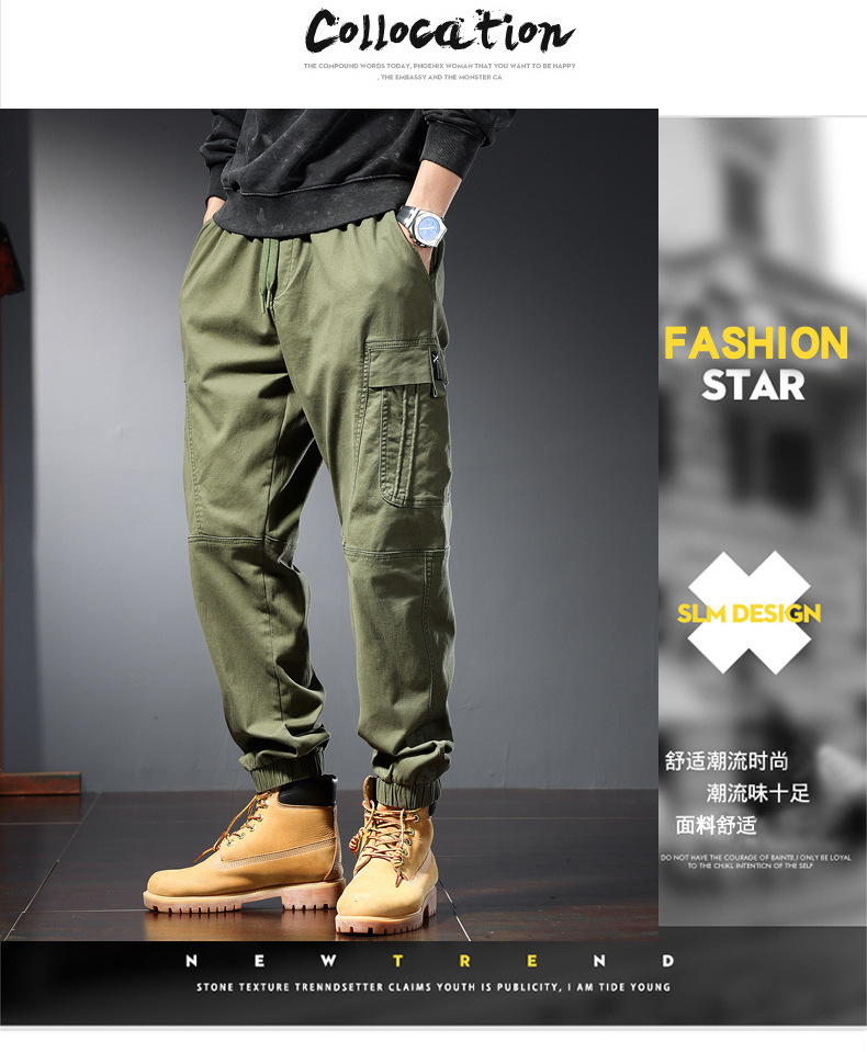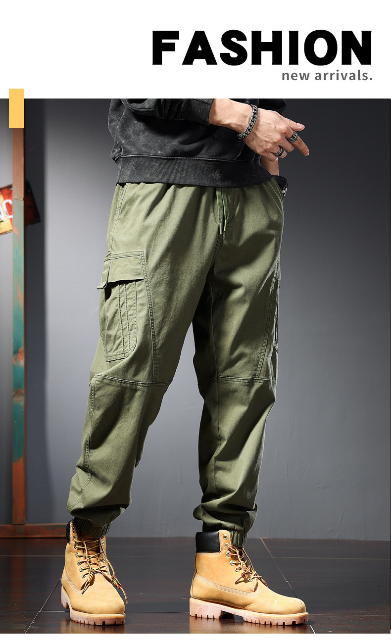 大码男装夏季新款工装休闲裤男日系宽松潮流多口袋束脚工装长裤子