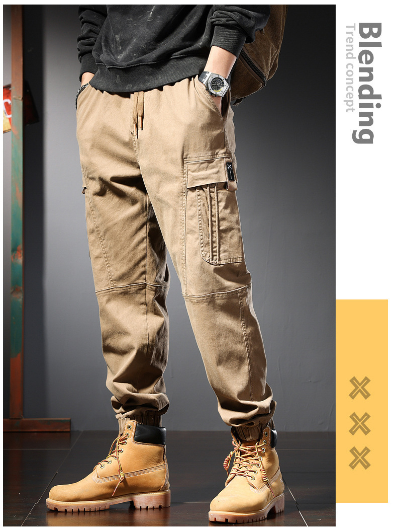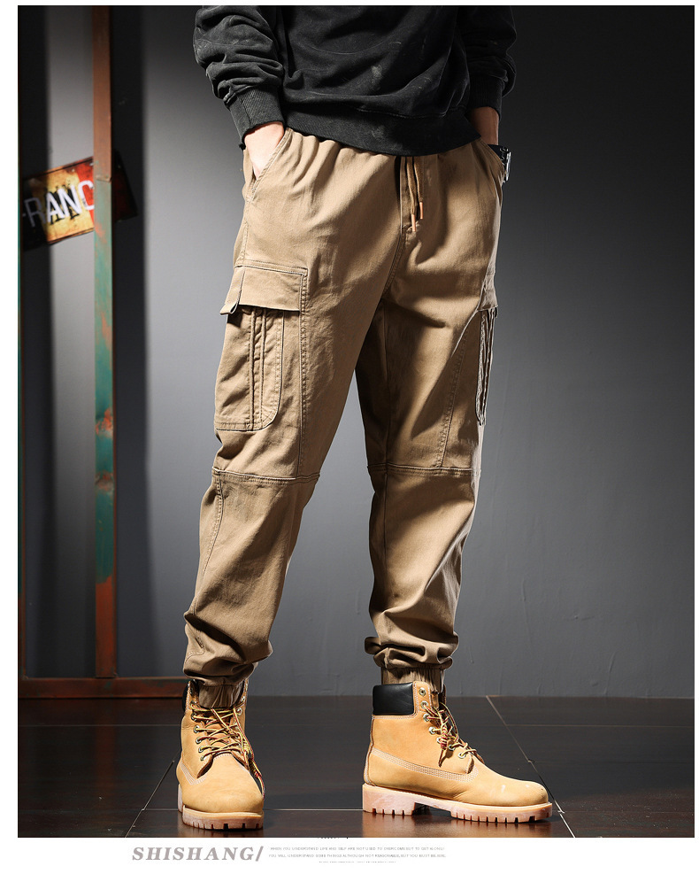 日本の多ポケットのズボンの男性の春のゆったりとした口の小さい足のカジュアルなズボンの復古の百合のファッションの足首のズボンの男性