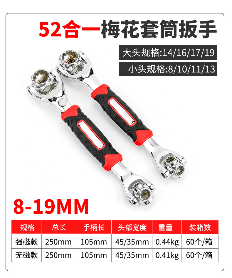 万能レンチ52合一多機能ソケットレンチセット八合一犬骨多多360度8-21mm