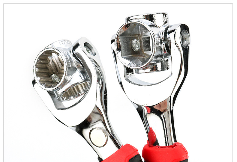 多機能8合1ソケットレンチ万向赤黒ゴム柄回転鏡面八合一多頭梅レンチ
