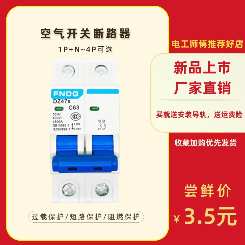 福能エアスイッチ家庭用サーキットブレーカー2P電気遮断器三相空開220V漏電防止高遮断能力