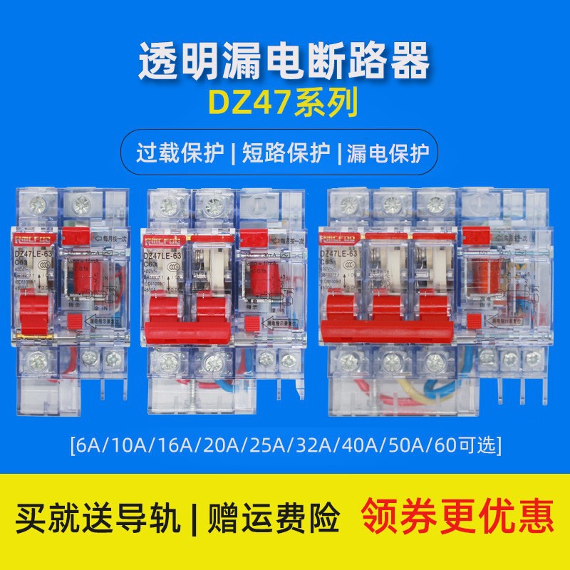 福能透明漏電保護器空け遮断器1p + n漏れ保護DZ47LE-63A総ゲート220v三相