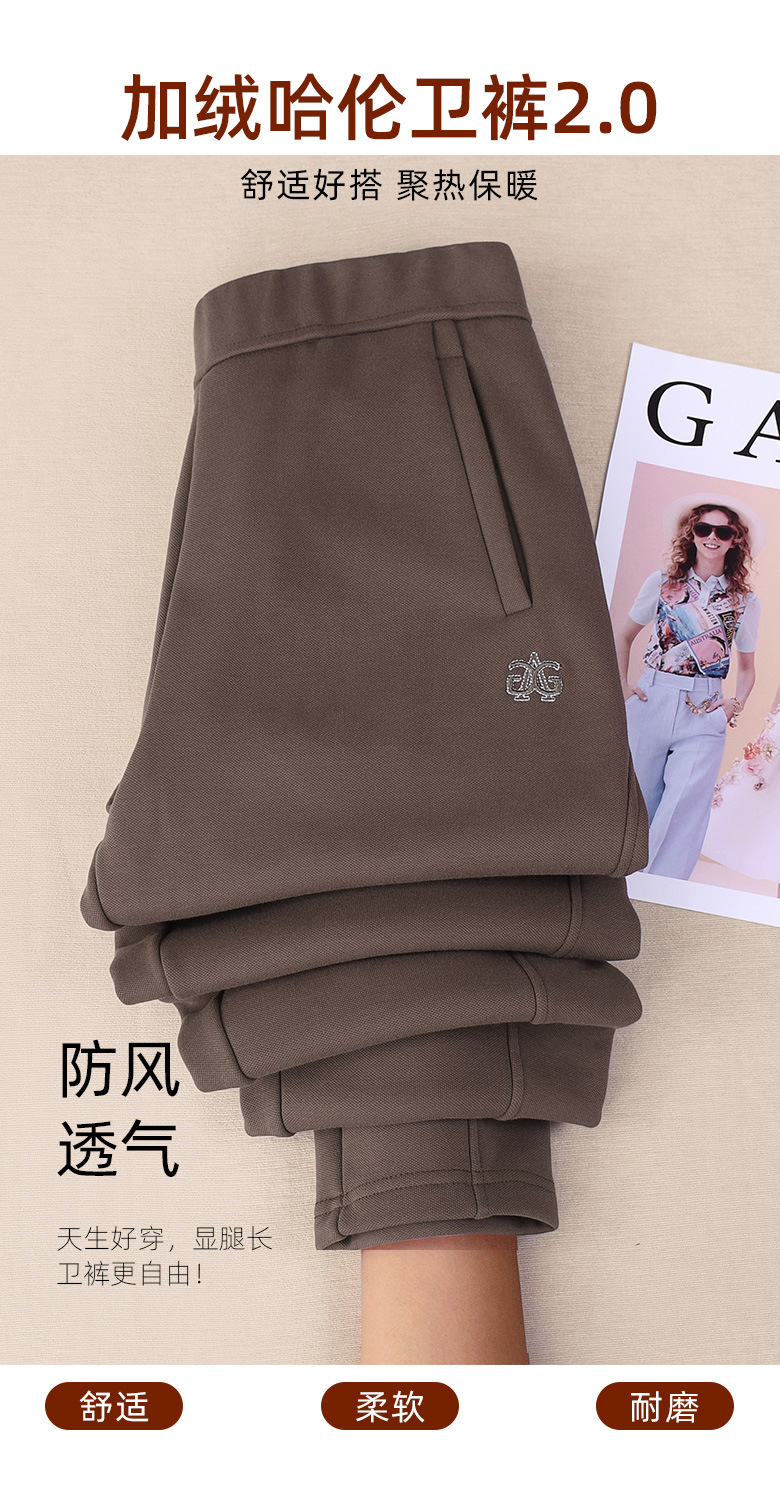 GAGN羊の小毛の厚い衛のズボンの女性の2024の新型の冬のベルベットの薄い灰色のスポーツのズボンはゆったりしていて腰が長くなります。