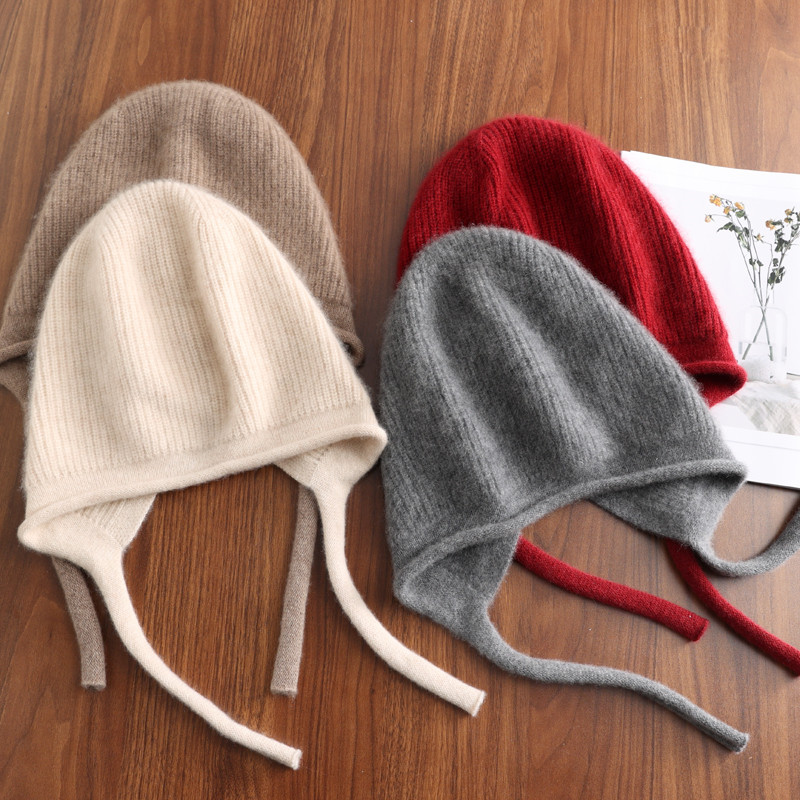カシミヤ帽子付き秋冬男女ニットウール糸カバー耳保護ヘッドキャップ防寒フロント保温