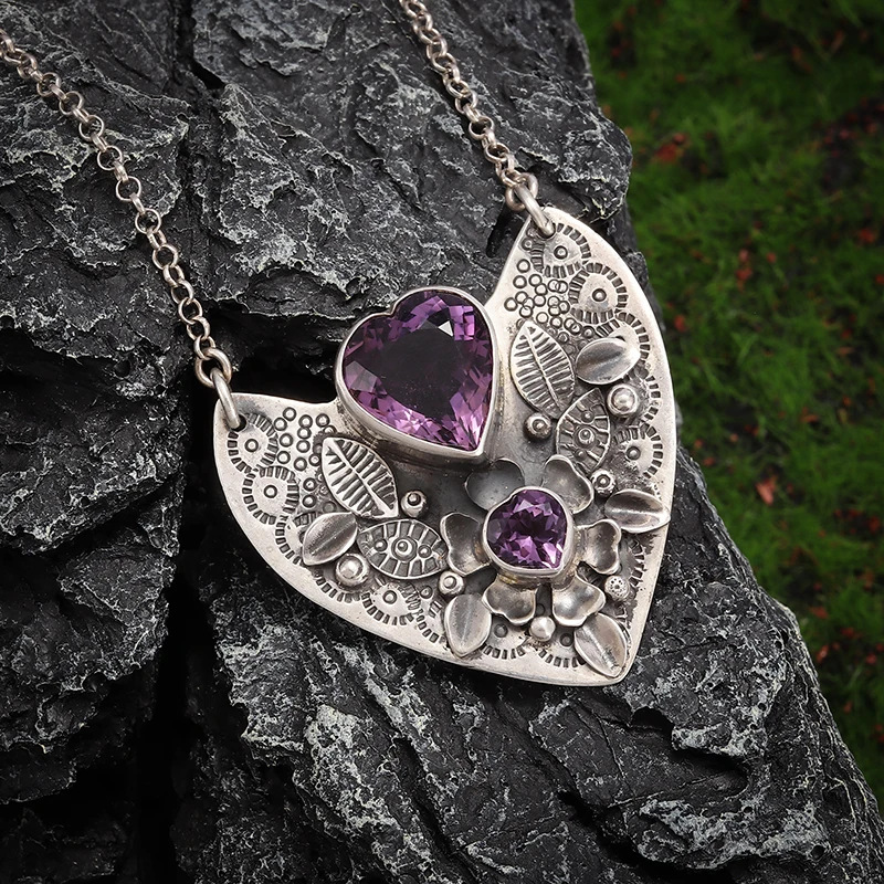 跨境热卖速卖通拼多多TEMU欧美风爱心宝石项链环保合金吊坠首饰