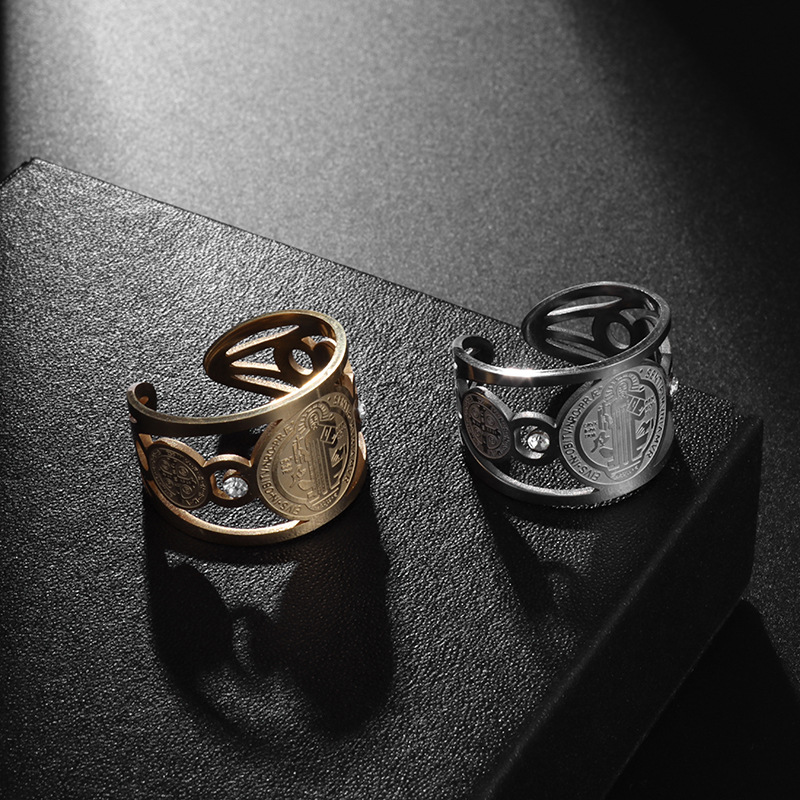 ヨーロッパとアメリカの多用途ステンレス鋼聖ベネディクト悪魔祓いチタン鋼メンズオープンリングハイエンドファッションリング卸売