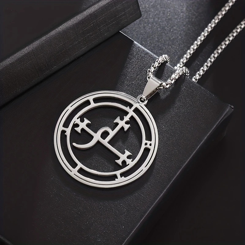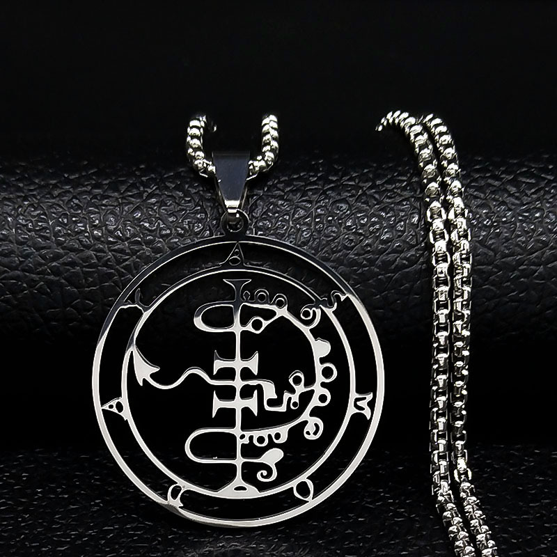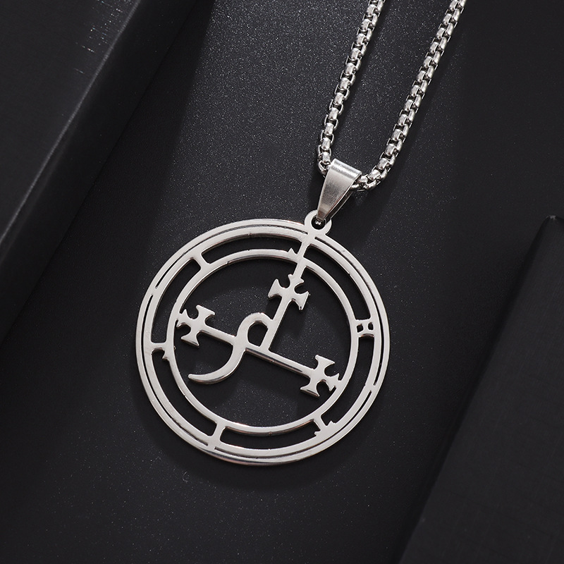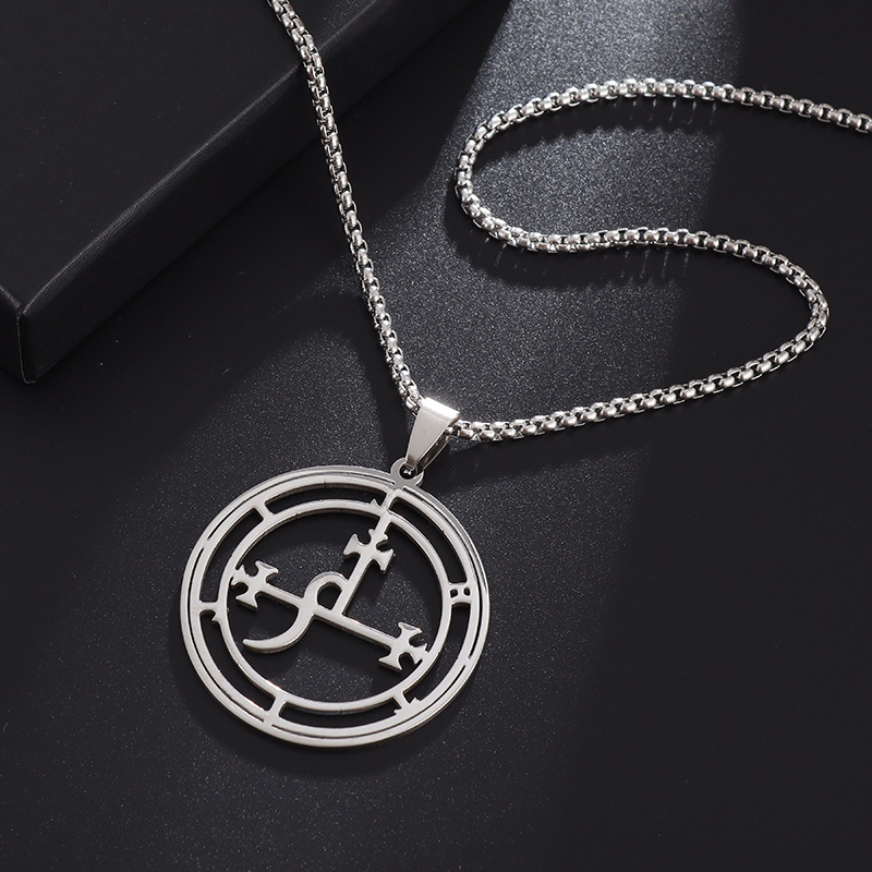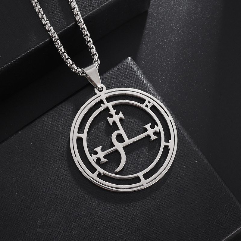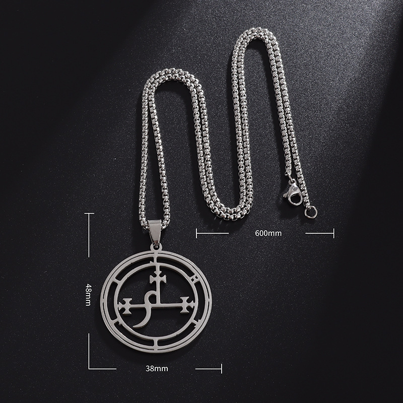 欧美风新款男士所罗门72柱魔神图案不锈钢吊坠时尚气质钛钢项链女