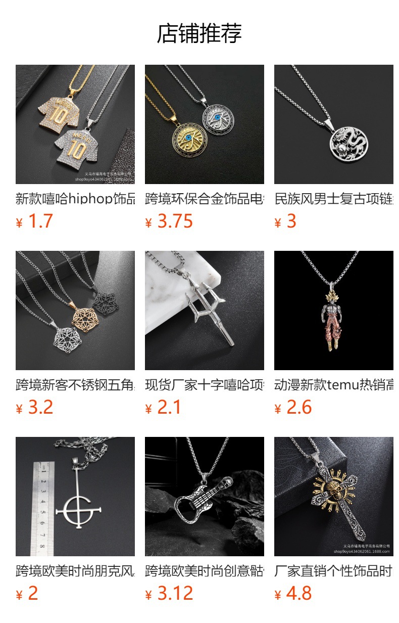 动漫新款temu热销高级感小众设计项链批发ins合金潮配饰个性吊坠