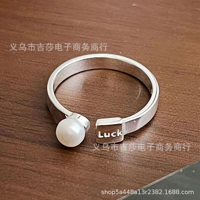 ルック文字シンプルな指輪真珠女ins小衆デザイン感高級軽贅沢ファッション気質口リング