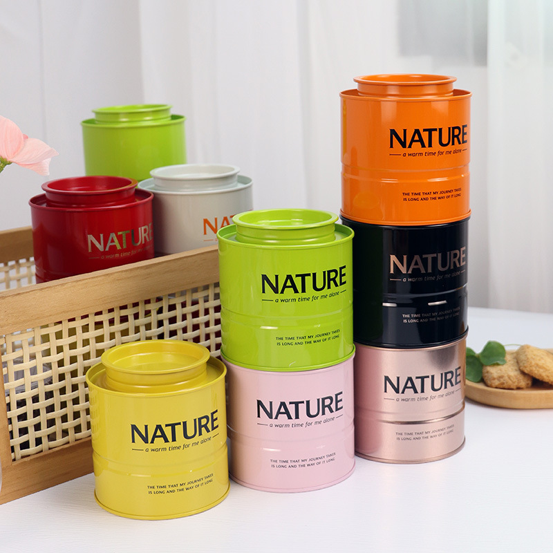 現物包郵便積み重ね缶円形ブリキ茶葉缶純色花茶缶プレゼント包装小ロットDIY