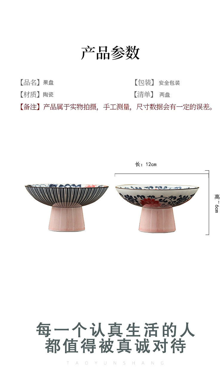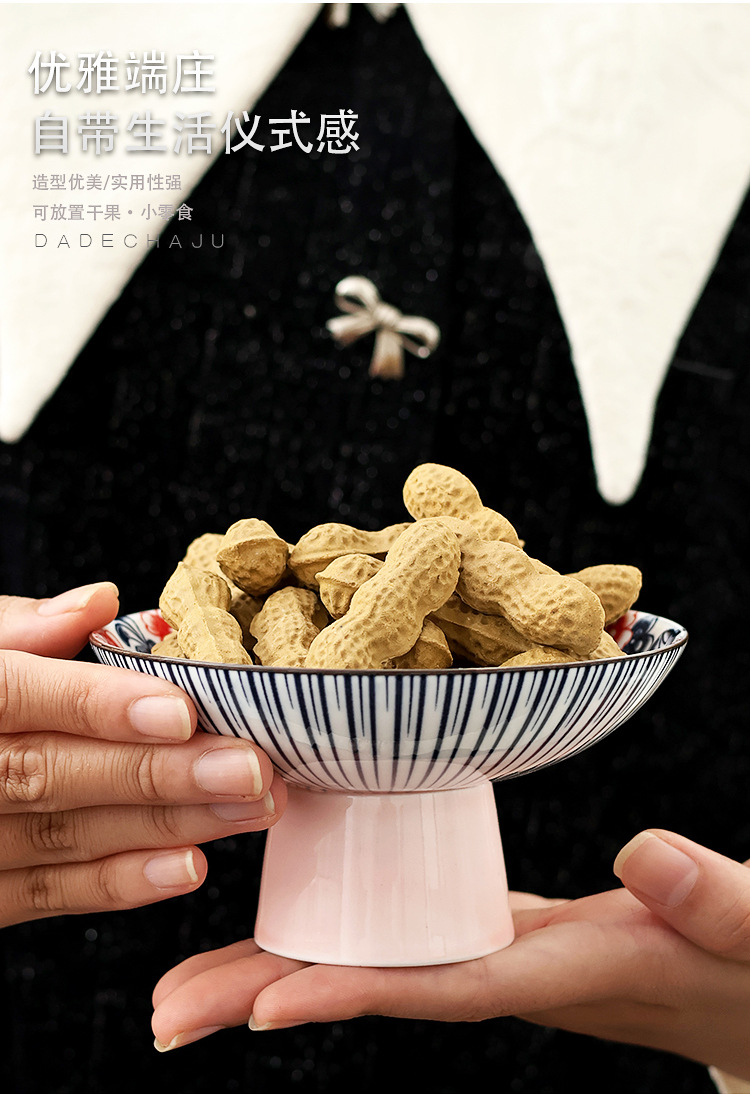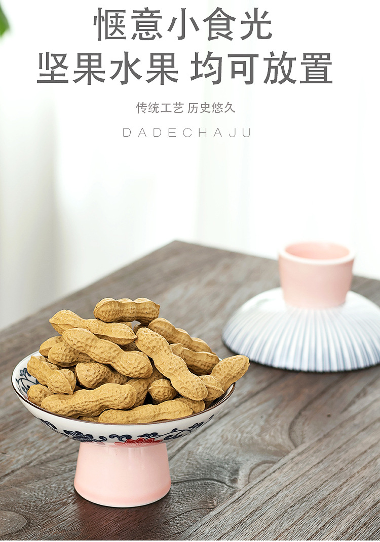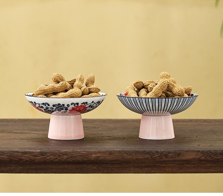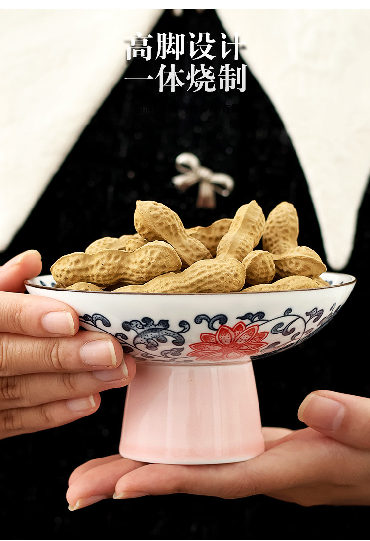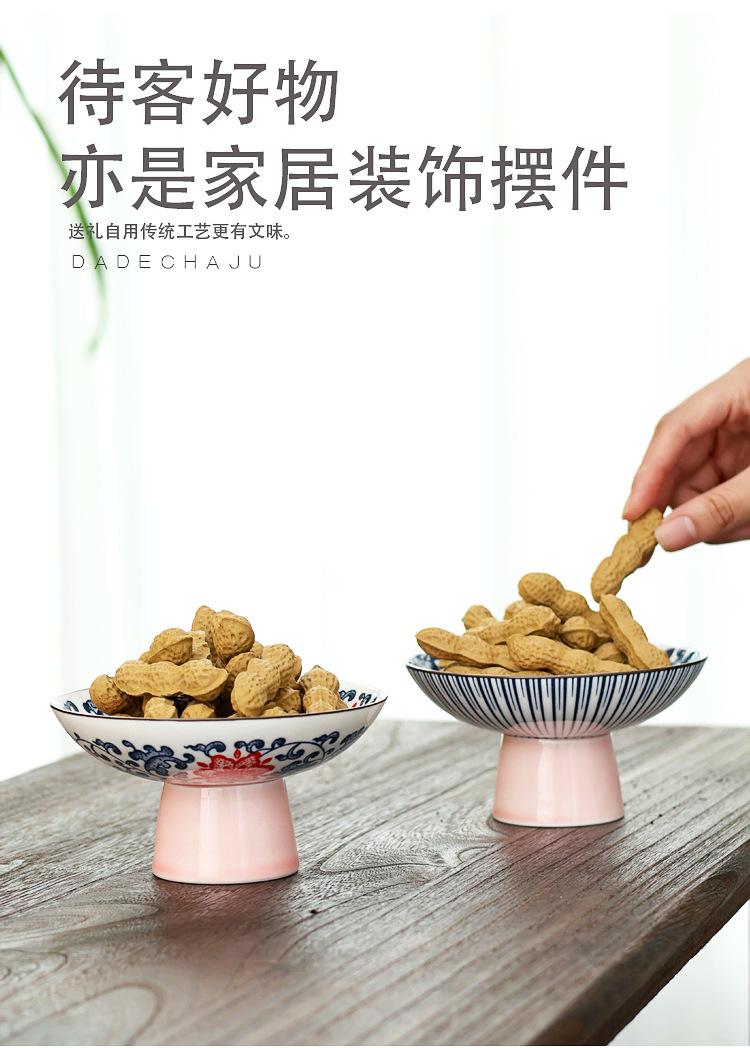 高級青花高足果物皿レトロ中国式客間家庭用陶磁器茶点皿菓子心ナッツドライフルーツ皿