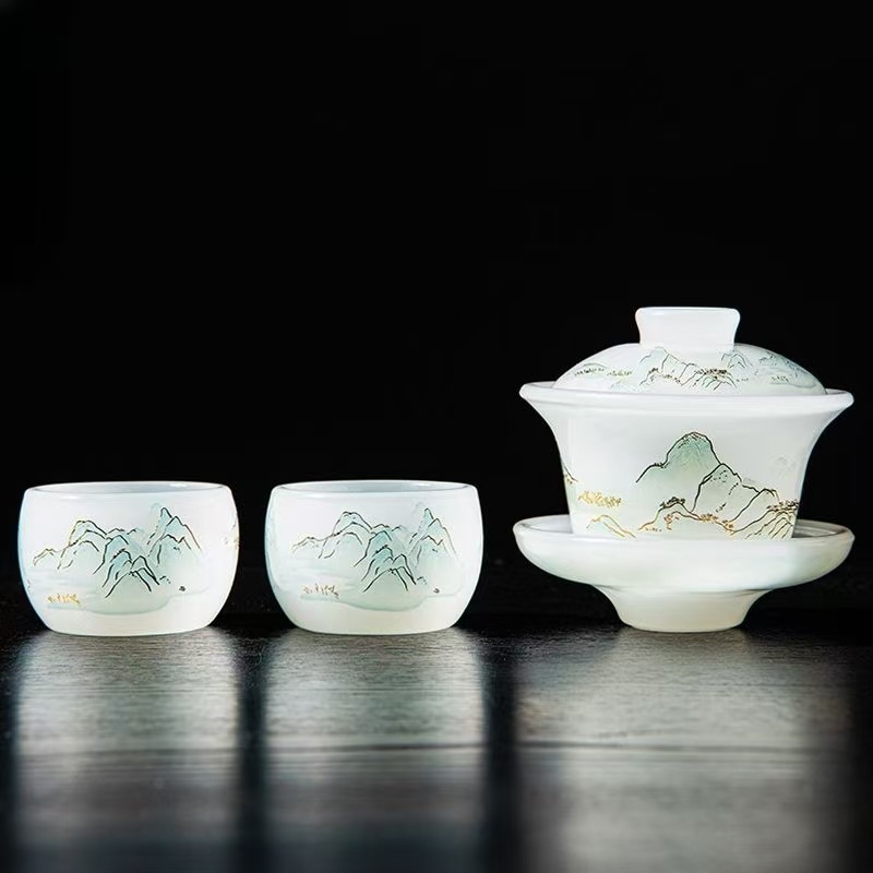 冰种琉璃千里江山盖碗中国风三才泡茶碗茶杯家用防烫功夫茶具套组