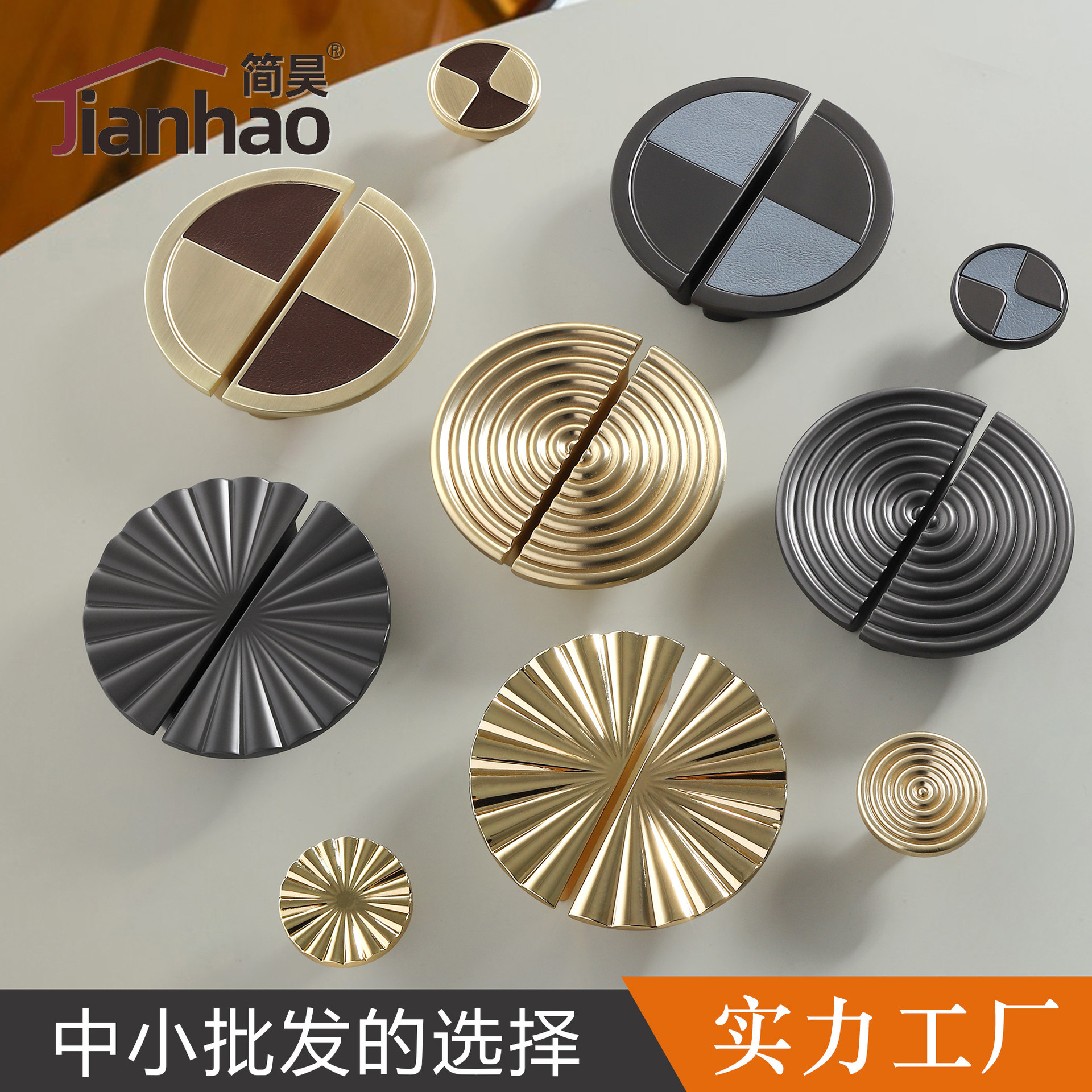キャビネットのドアの取っ手の新しい中国式の金色の円形は引き出しの食器棚の軽い豪華なタンスのドアの取っ手の金属の部品を詰めます。