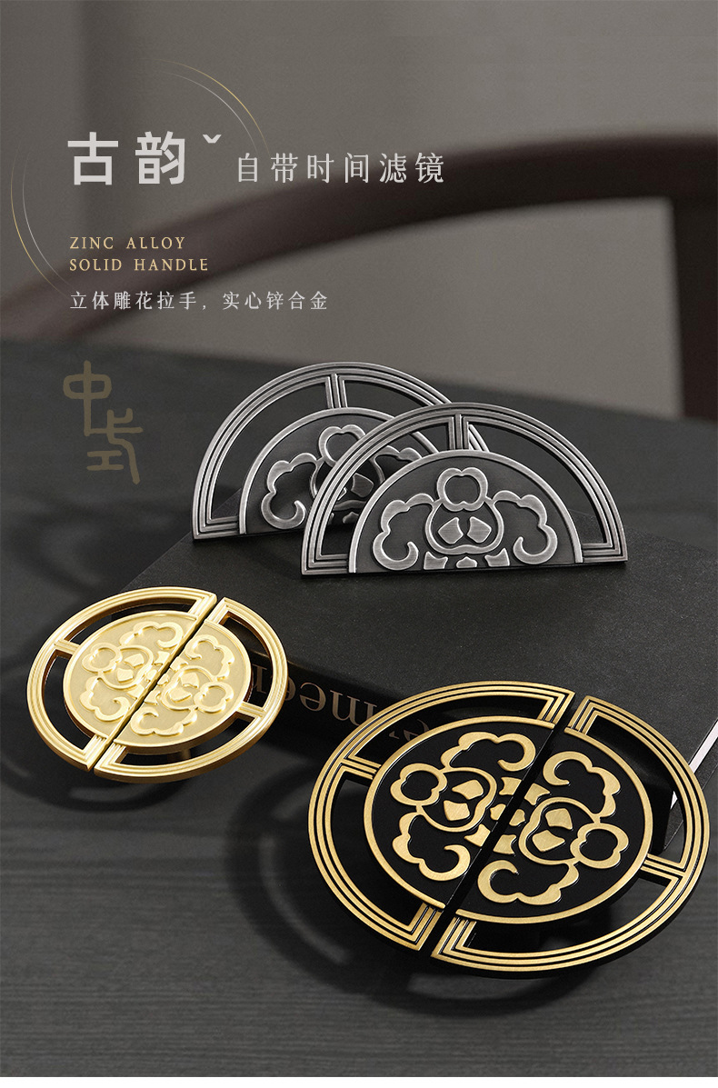 新中国式金銀色拉糸復古盤ドア取っ手円形対赤木引き出し戸棚軽贅沢たんす取っ手