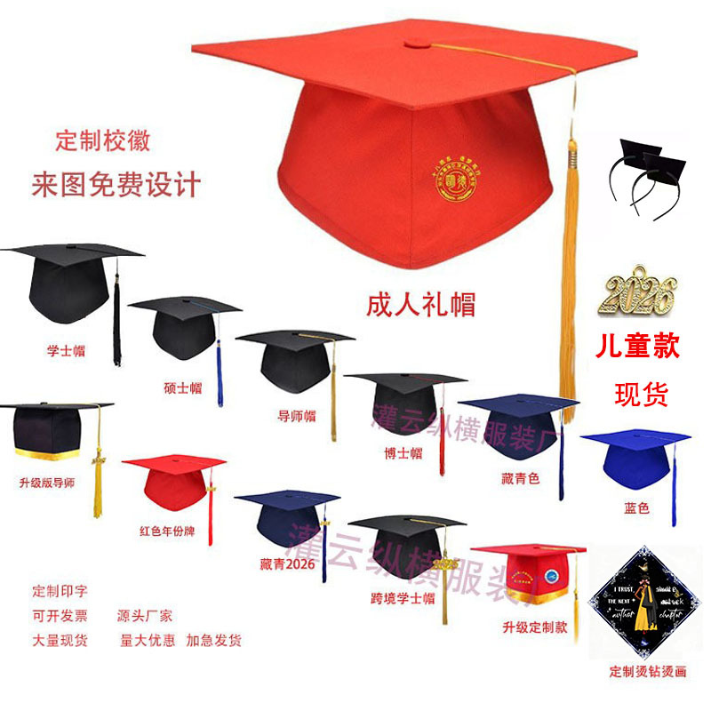 批发2026年份牌印制校徽18岁十八岁高中生成人礼帽子大学生学士帽