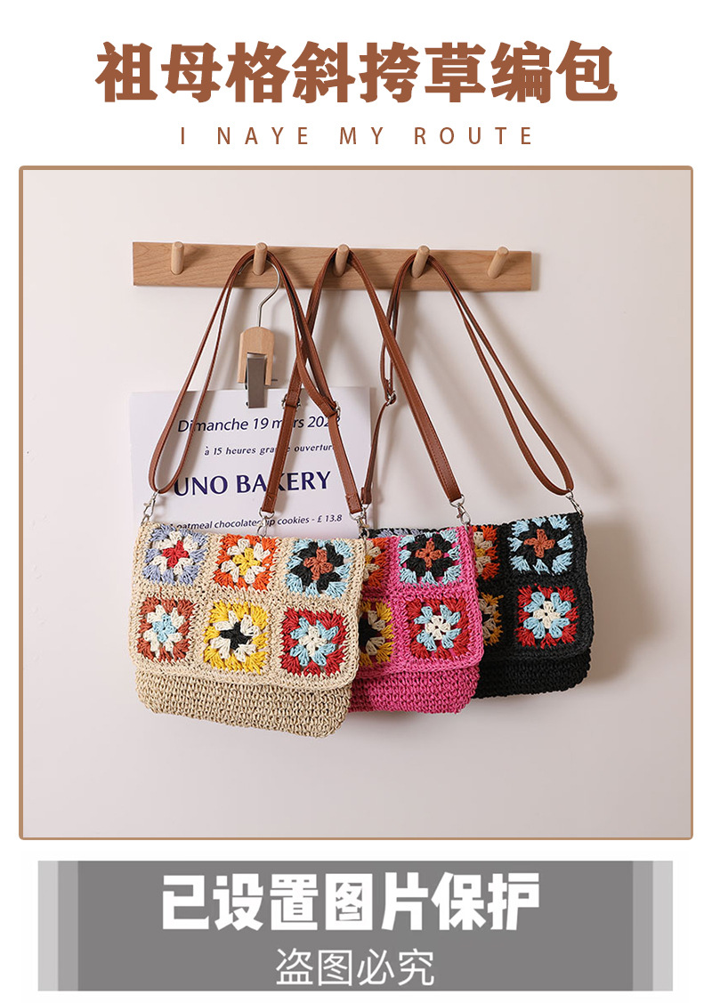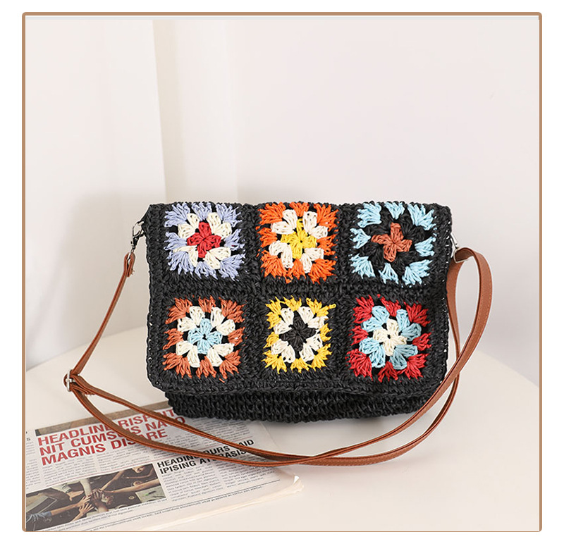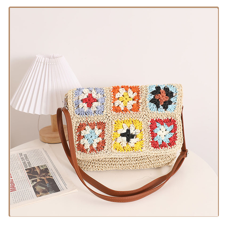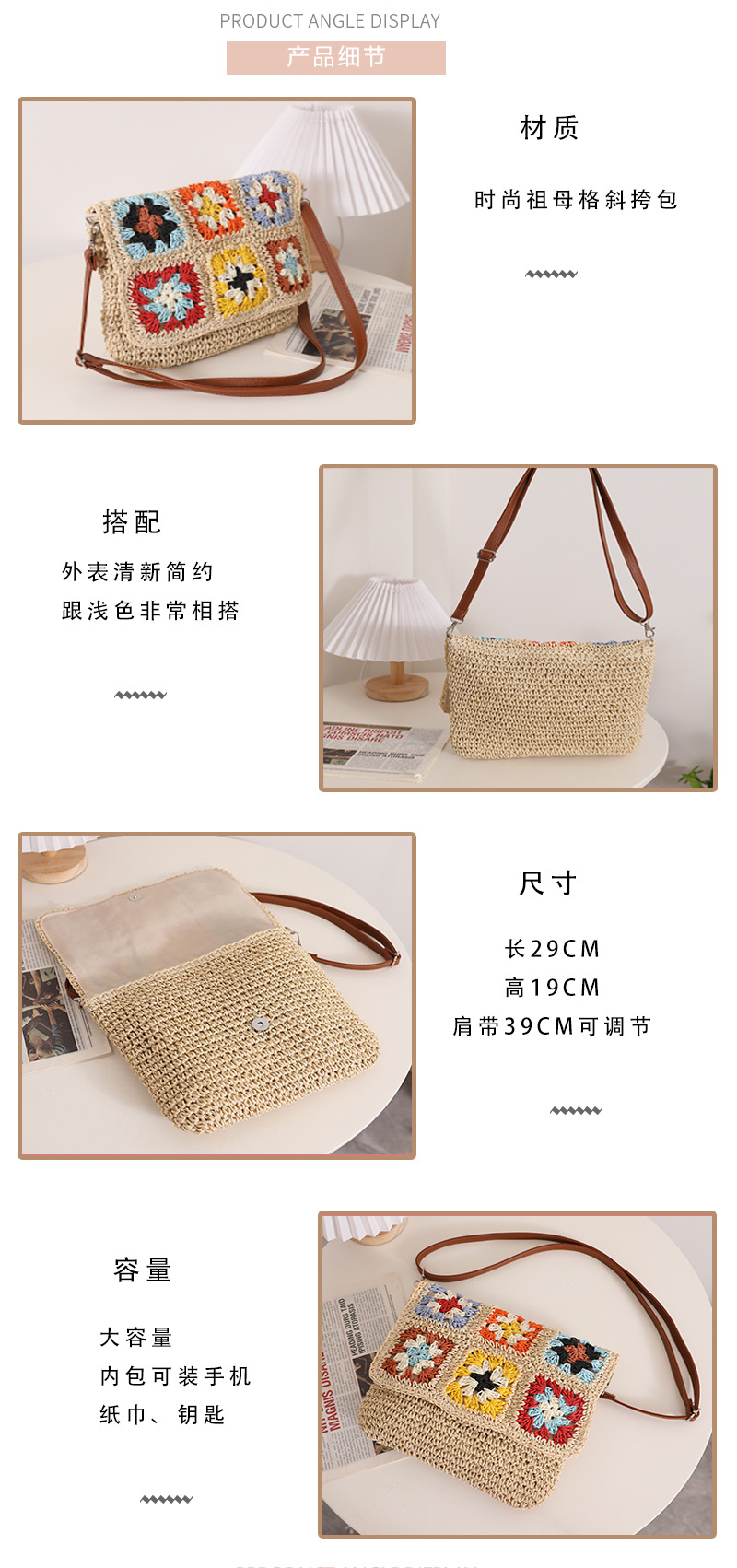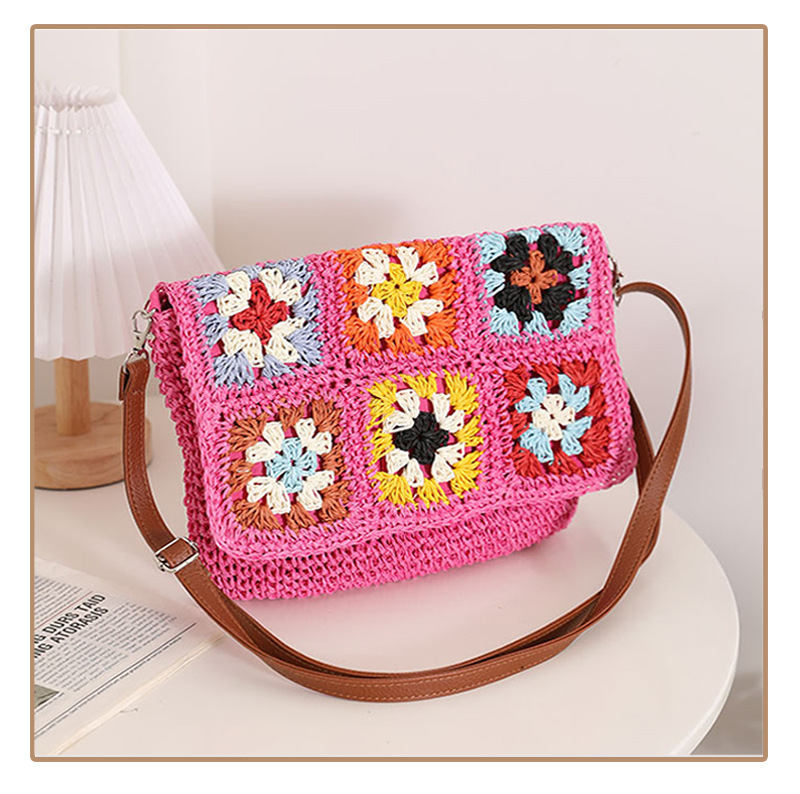 民族風カラー花綿糸編みバッグ新型レジャー草編みバッグ休暇ビーチバッグ怠惰風ショルダーバッグ