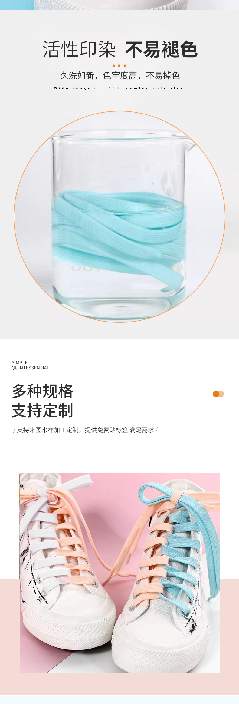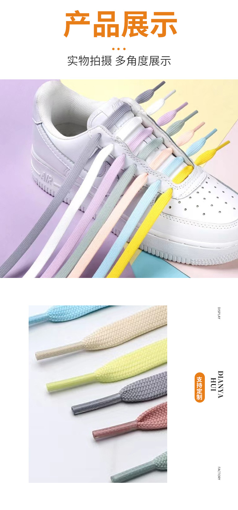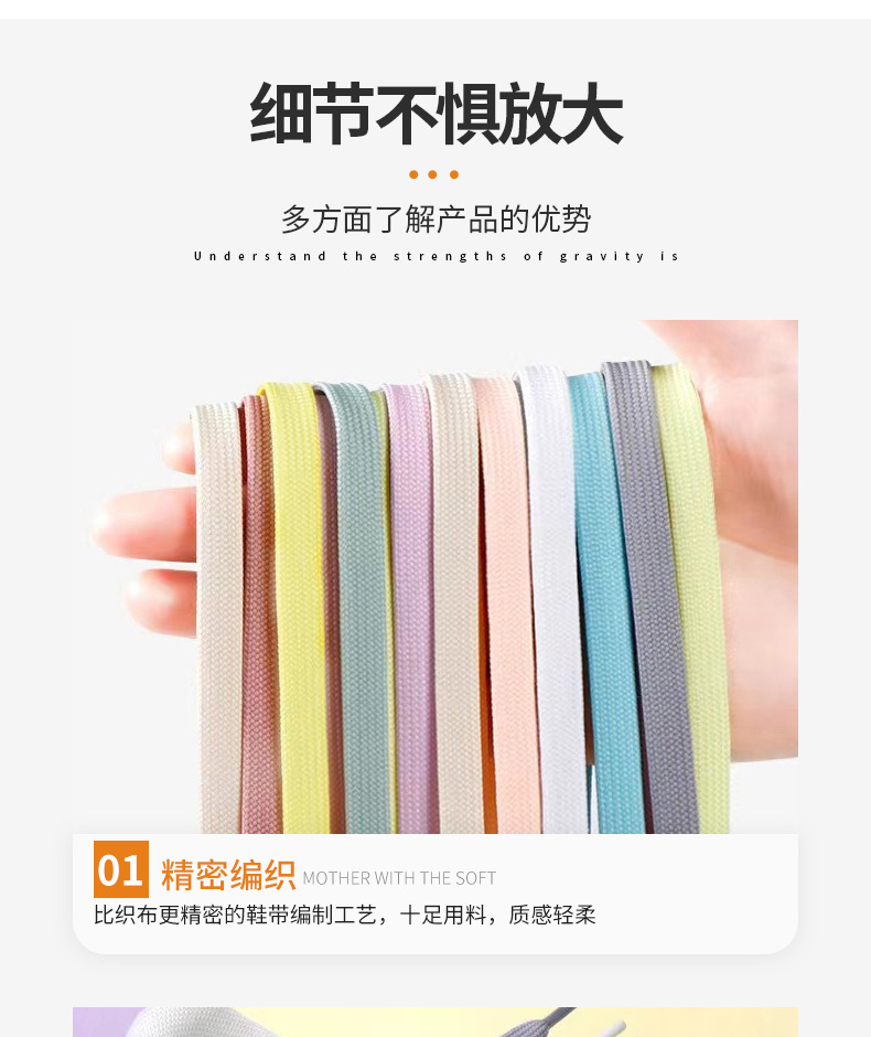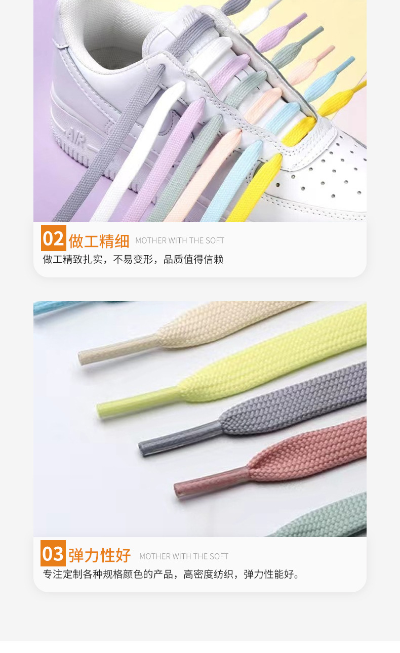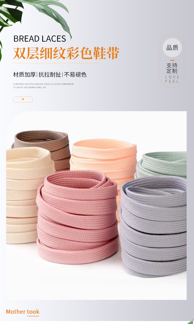 靴ひもメーカー卸売ファッショントレンド靴ひも二層細かい白い靴フラット厚みのある純綿マルチカラー靴ひも