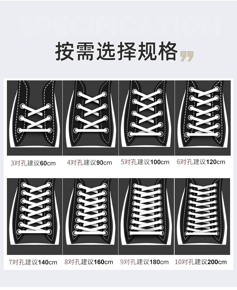 靴ひもの長さ 現在、100/120/140/160CMのお客様に連絡して、長さをカスタマイズできます
