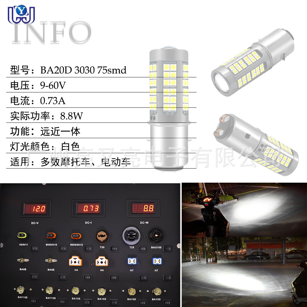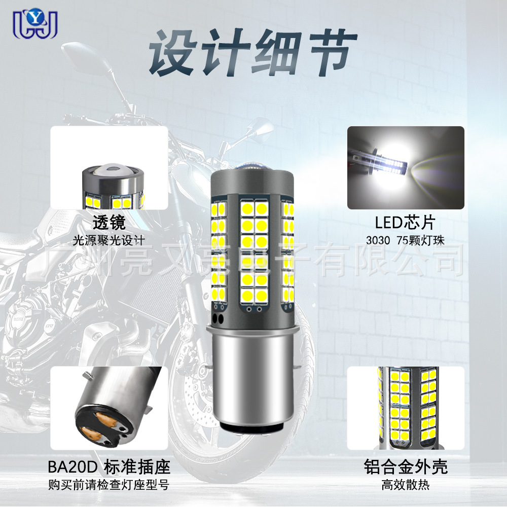 オートバイledヘッドライトba 20d二爪電動ライト遠近光3030-75灯オートバイヘッドライト