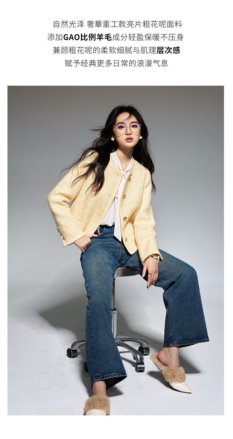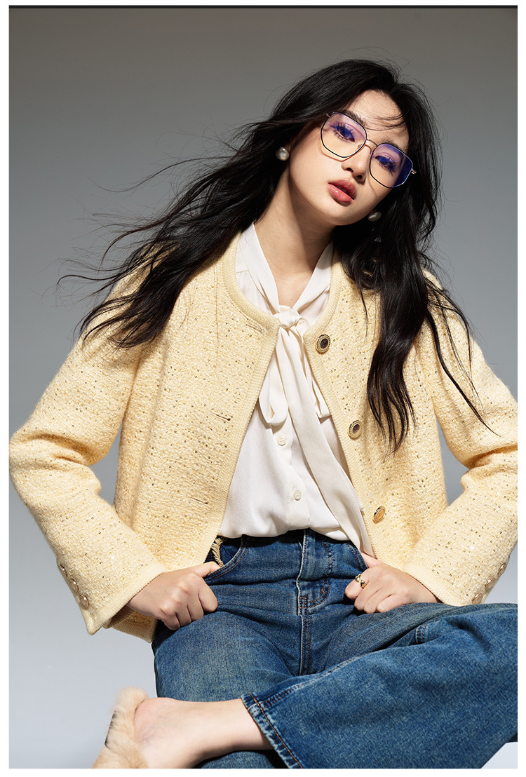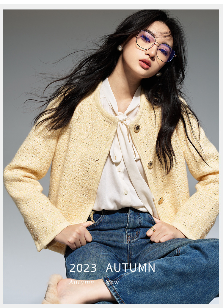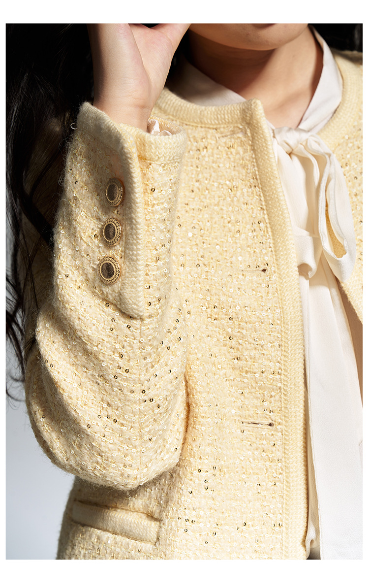 【盛都】早春の新作フレンチレトロ風イエローウールスパンコール付き高級感あふれるトップスジャケット(女性用)