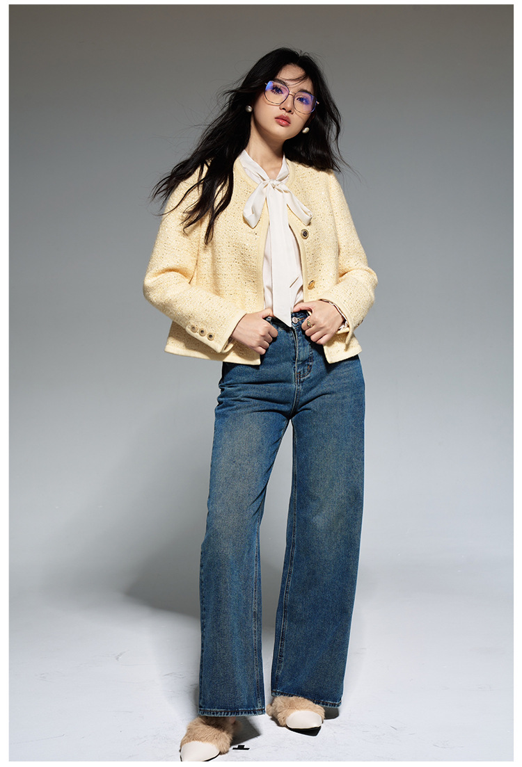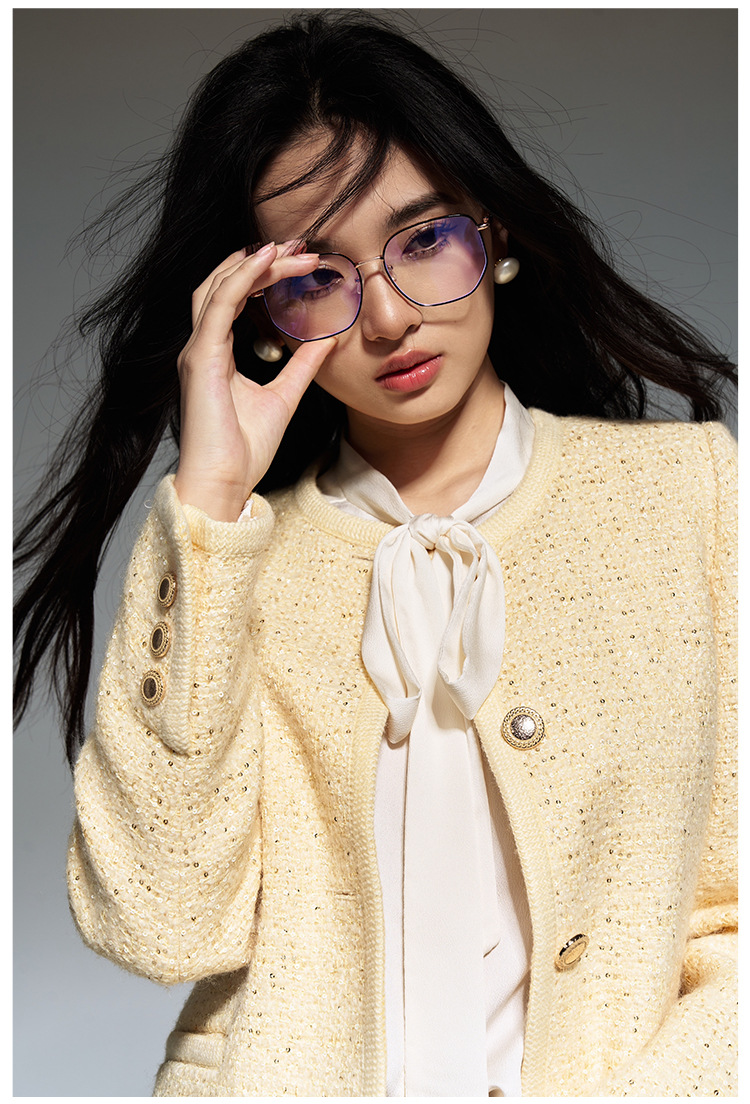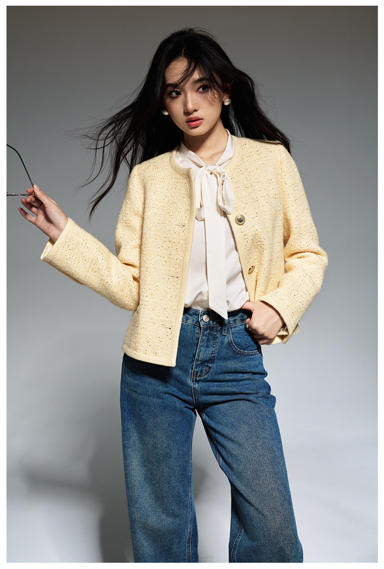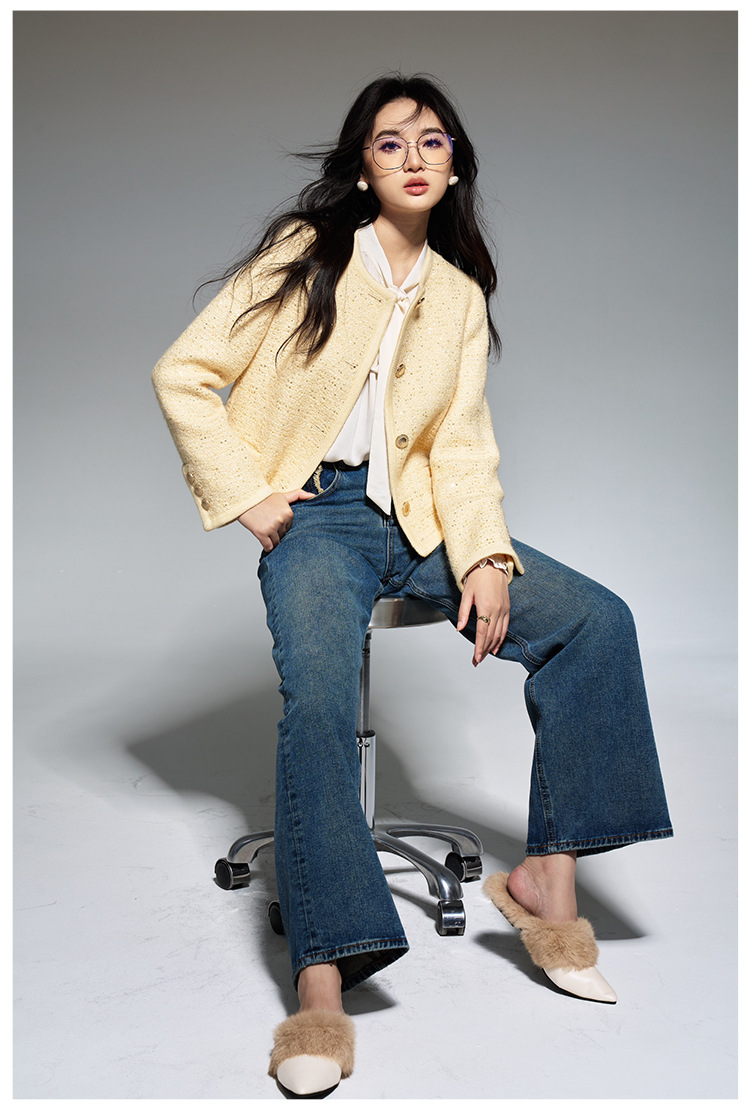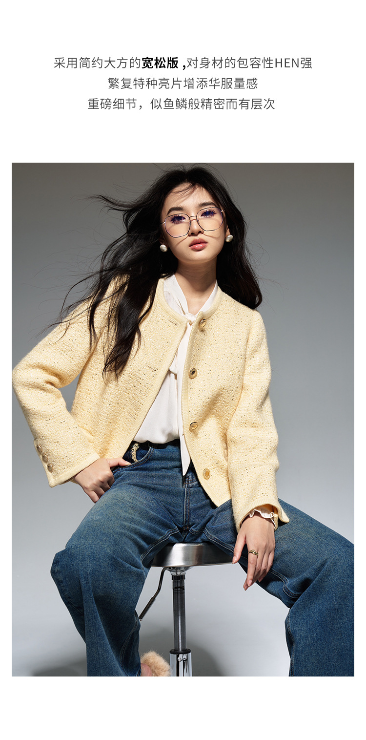 【盛都】早春の新作フレンチレトロ風イエローウールスパンコール付き高級感あふれるトップスジャケット(女性用)