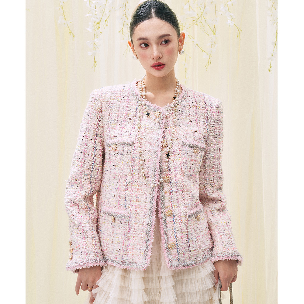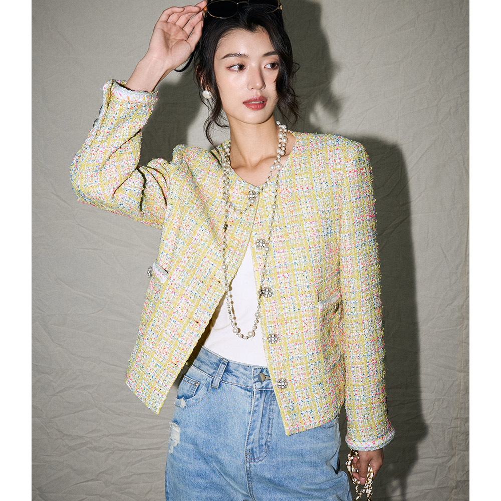 【盛都】26春新作 フレンチスタイル 高級感あふれるシャネル風 光沢のある織り込みツイード ショート丈ウールジャケット