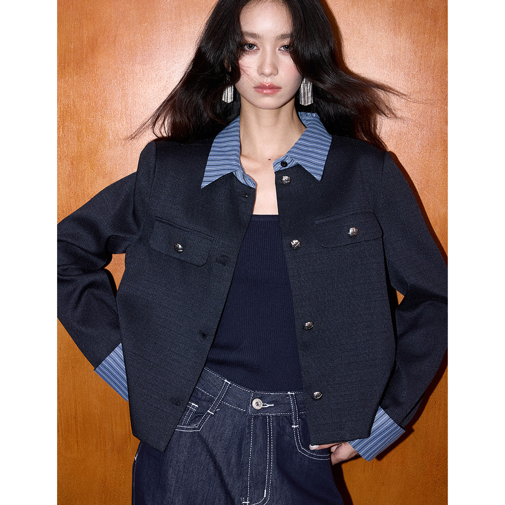 【盛都】26春新作 レトロ風 ハイエンドファッション ウールデニム切り替え ショート丈 シャネル風ジャケット レディース