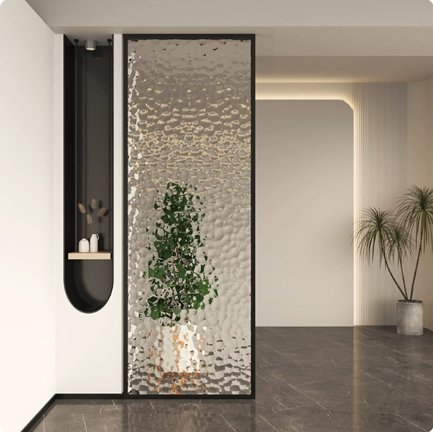 カラー 超白水紋波 + 鉄芸フレーム,超白長虹ガラス + 鉄芸フレーム,超白水紋波 + ステンレスフレーム,超白長虹ガラス + ステンレスフレーム,コラム + 岩板