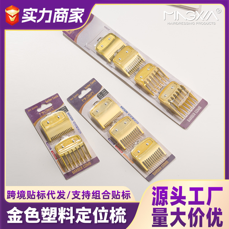跨境金色电镀电推剪限位梳理发店美发工具理发器定位梳美发卡尺梳