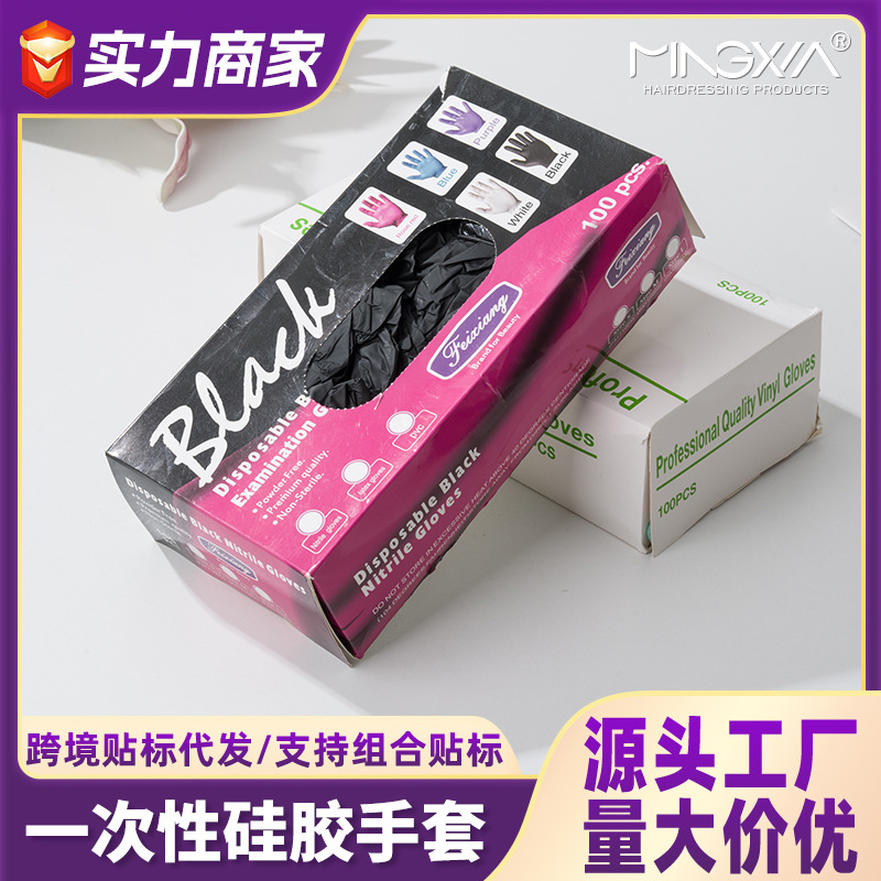 发廊烫发染发盒装一次性手套防滑洗头发手套美容美发染发硅胶手套