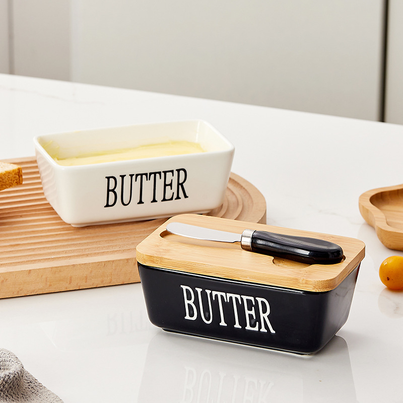 クロスボーダーセラミックバターボックス(ナイフと蓋付き)家庭用保存容器、鮮度保持容器、キッチンチーズ収納ボックス、卸売販売