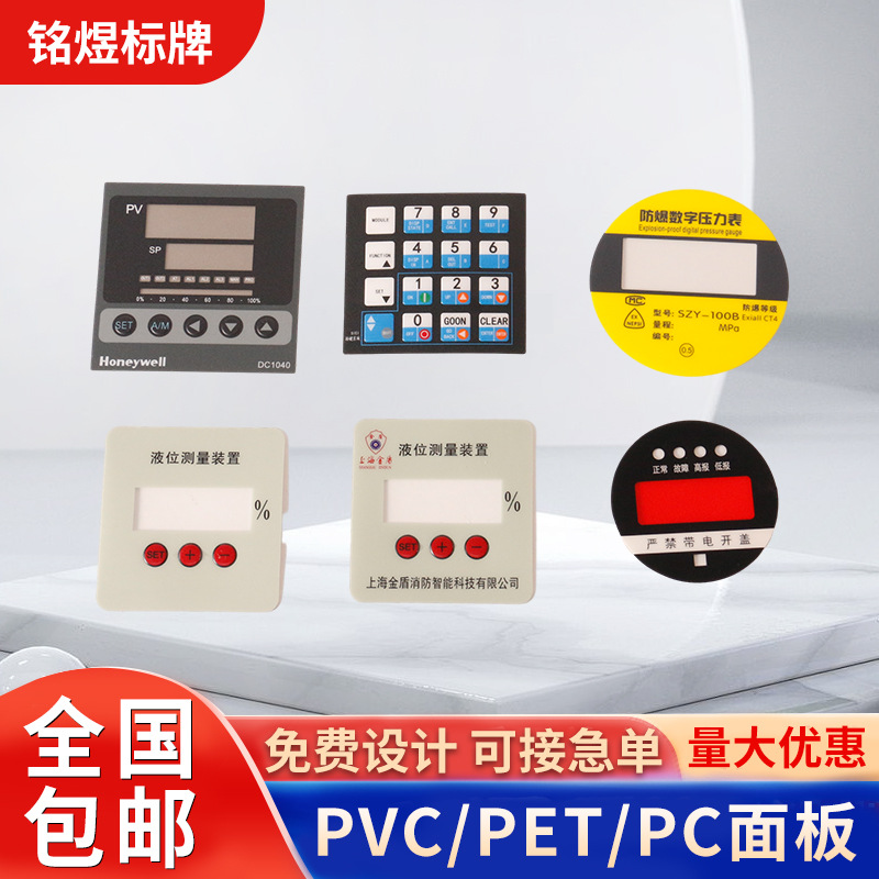 メーカー直供pvcボタンパネル鼓包フィルム面にシルク印刷pcpet銘板アクリルパネルを貼る