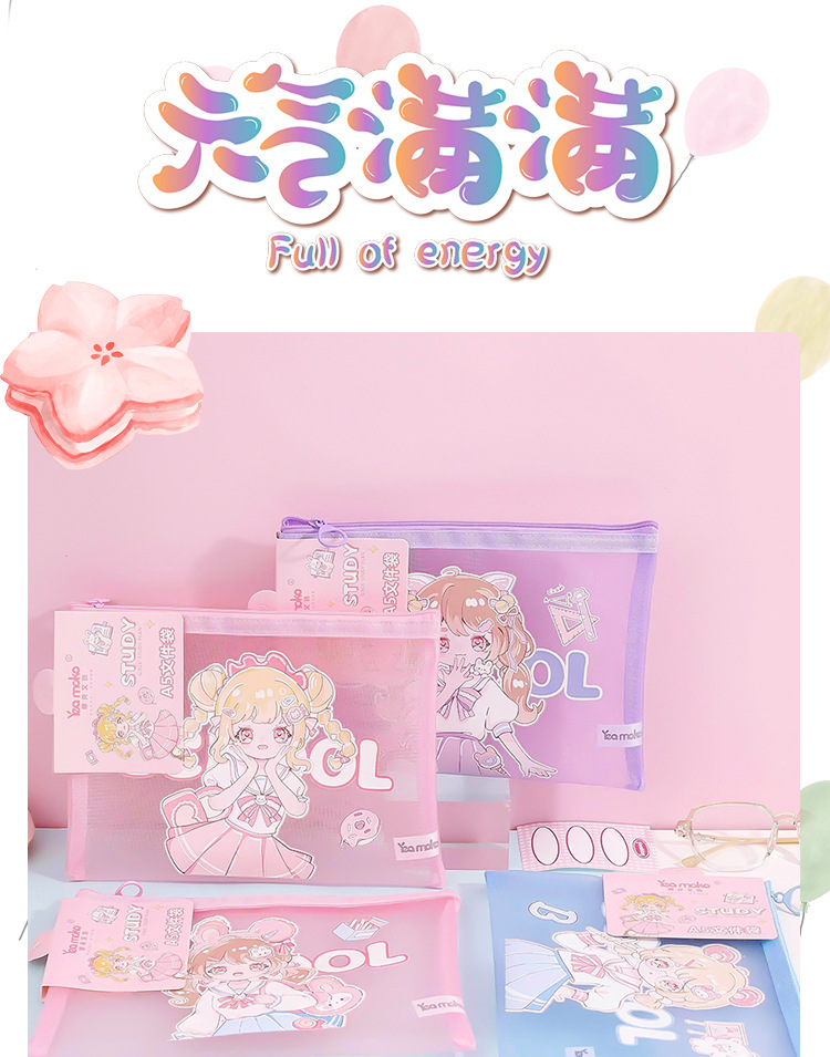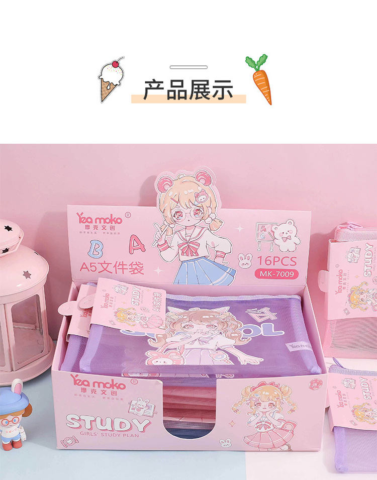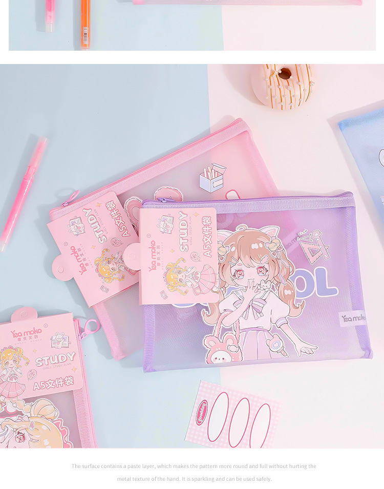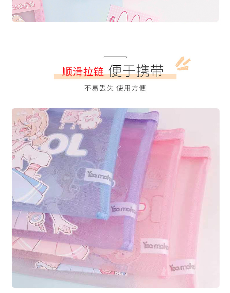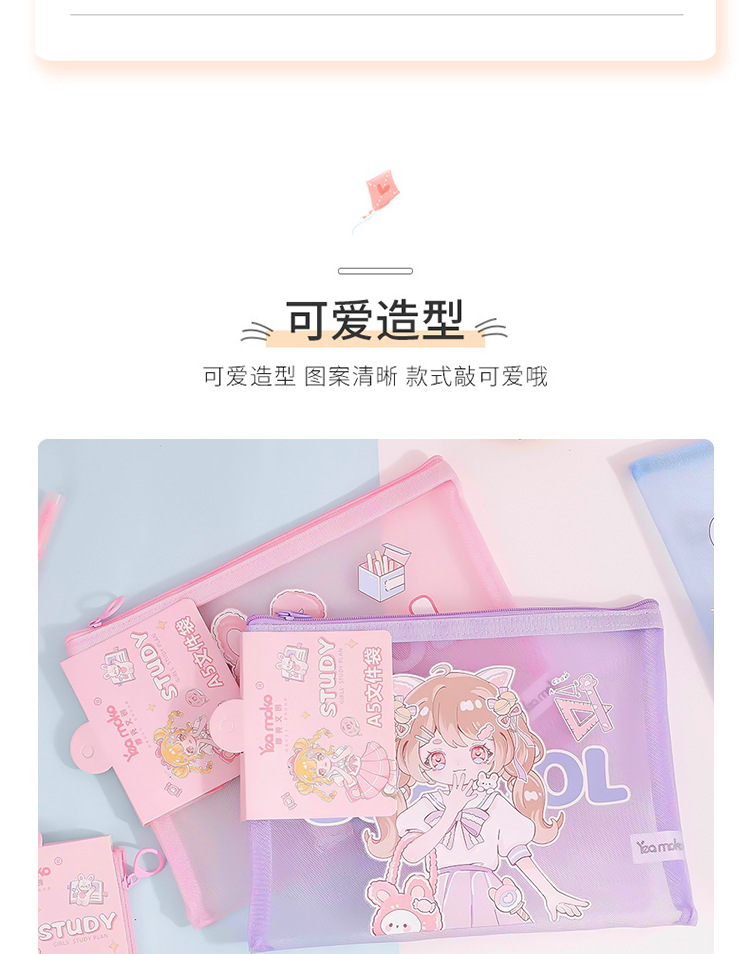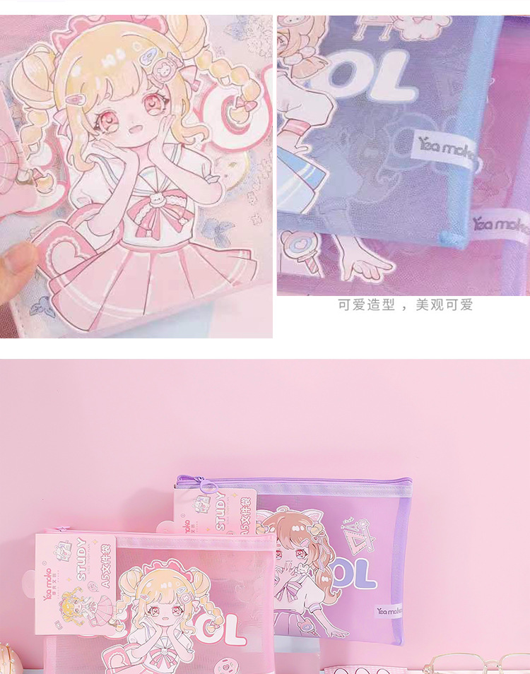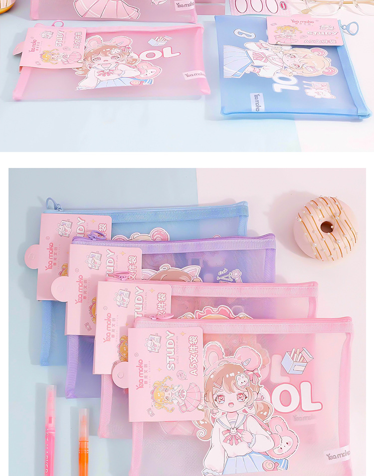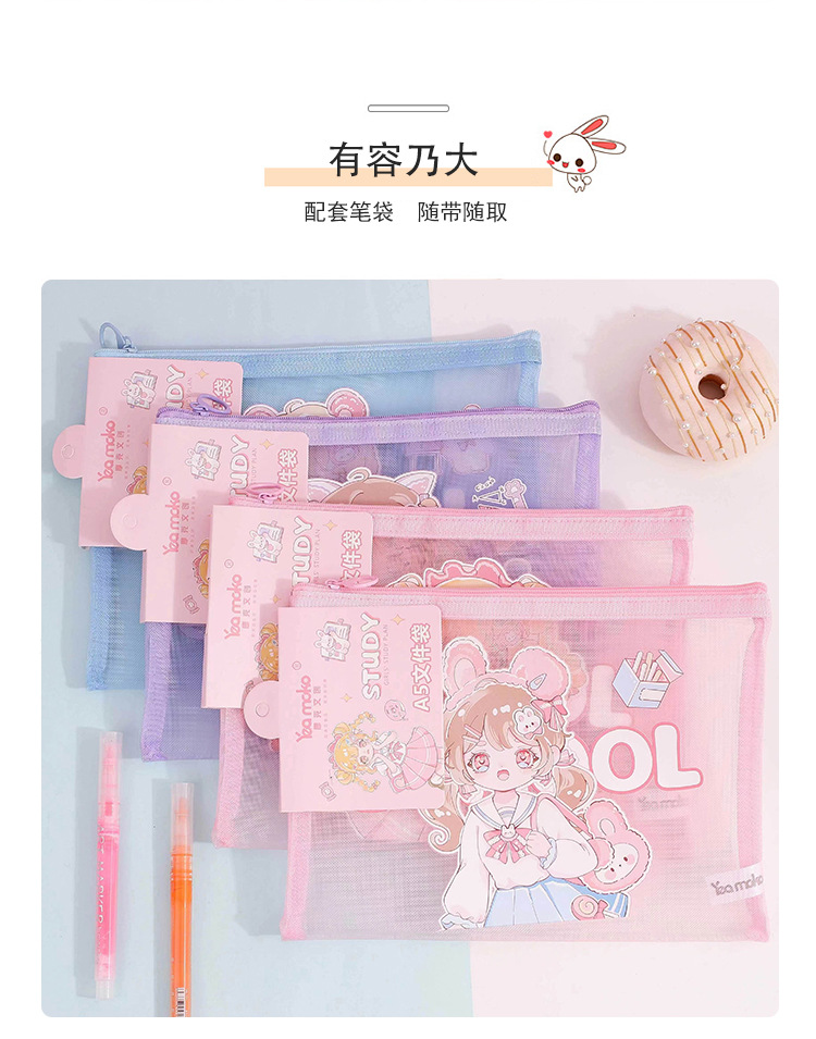 摩克ins高颜値資料袋学生文房具用品卸売りアニメかわいいa5透明網糸書類袋