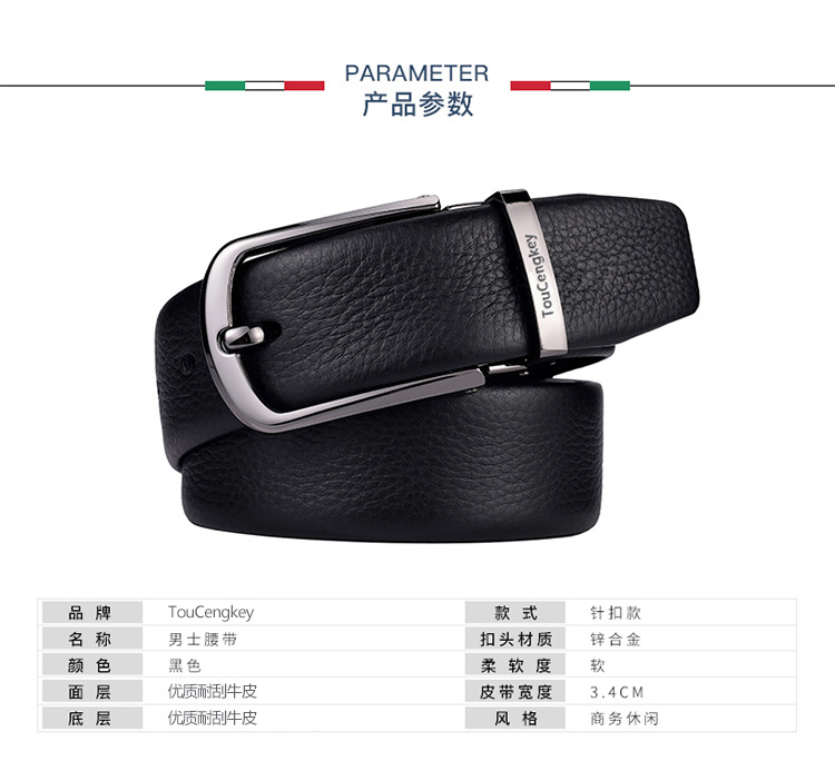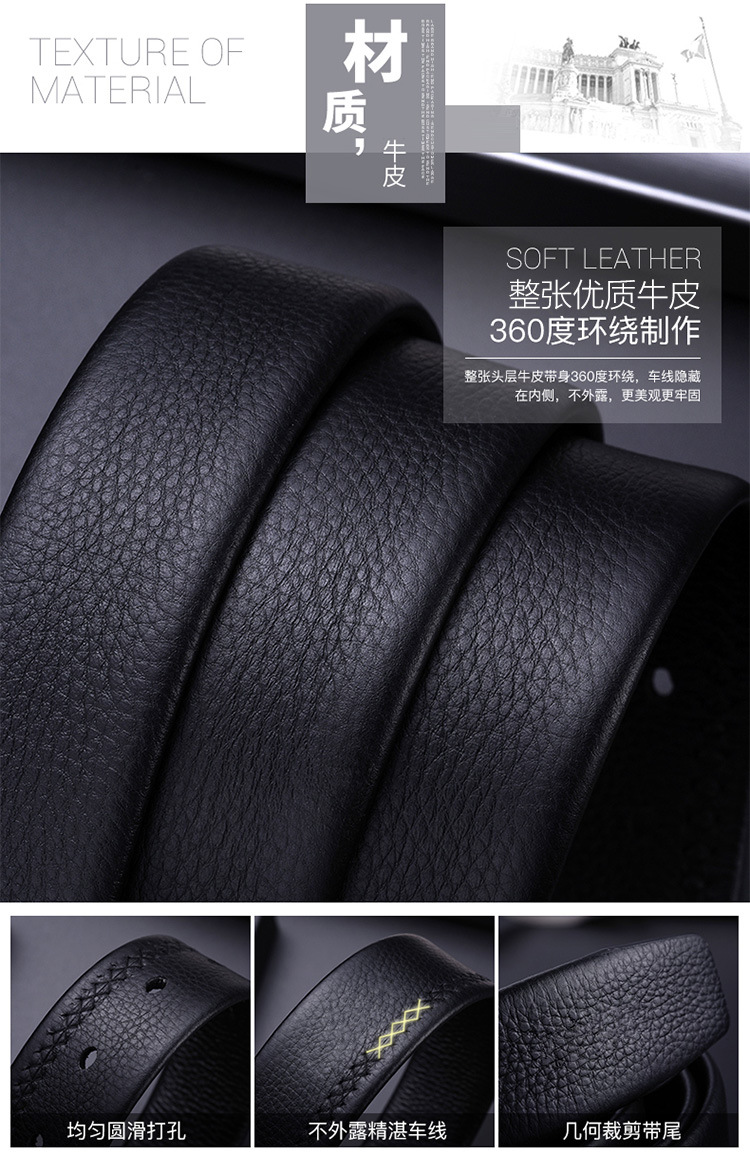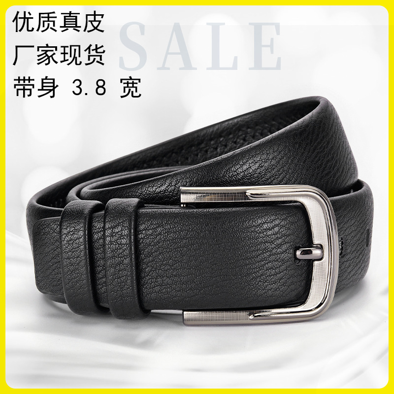 男士真皮 3.8针扣腰带牛皮男款荔枝纹时尚百搭皮带牛仔裤工厂现货