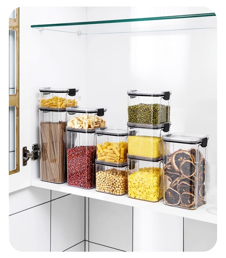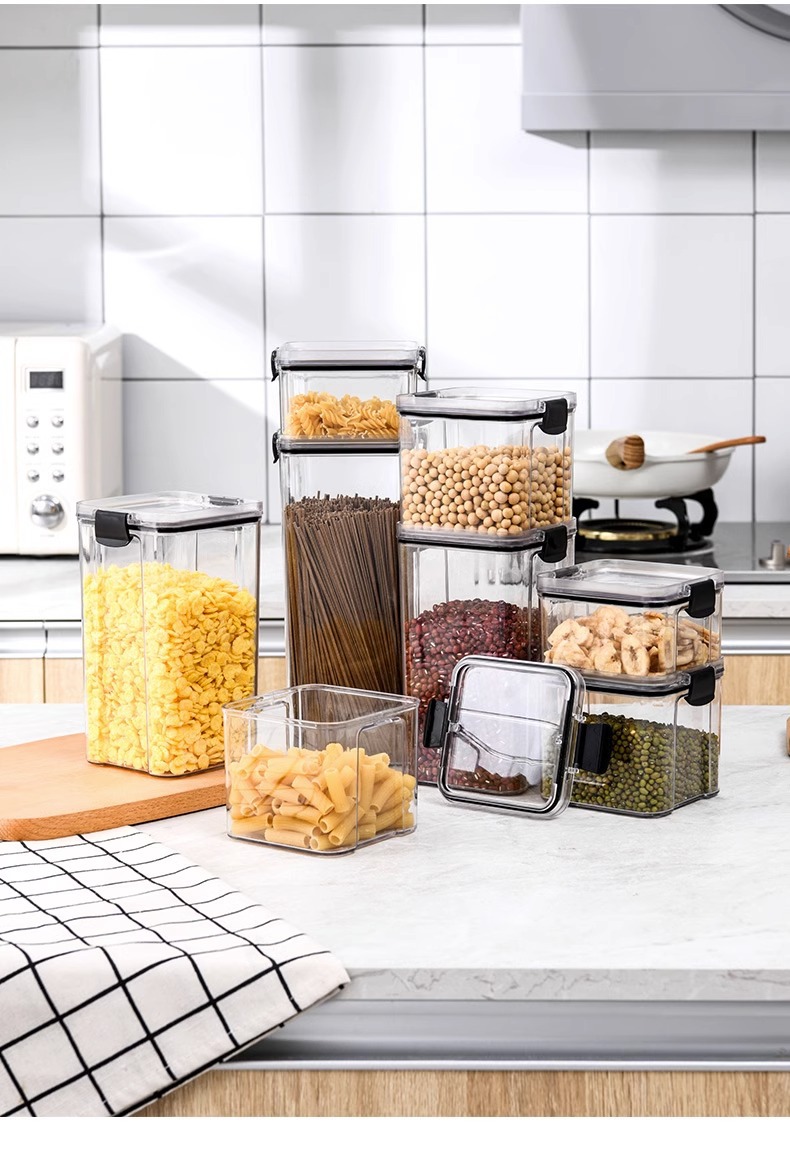 食品級透明プラスチック密封缶収納ケース角型厚手収納缶蓋付き五穀雑穀収納缶