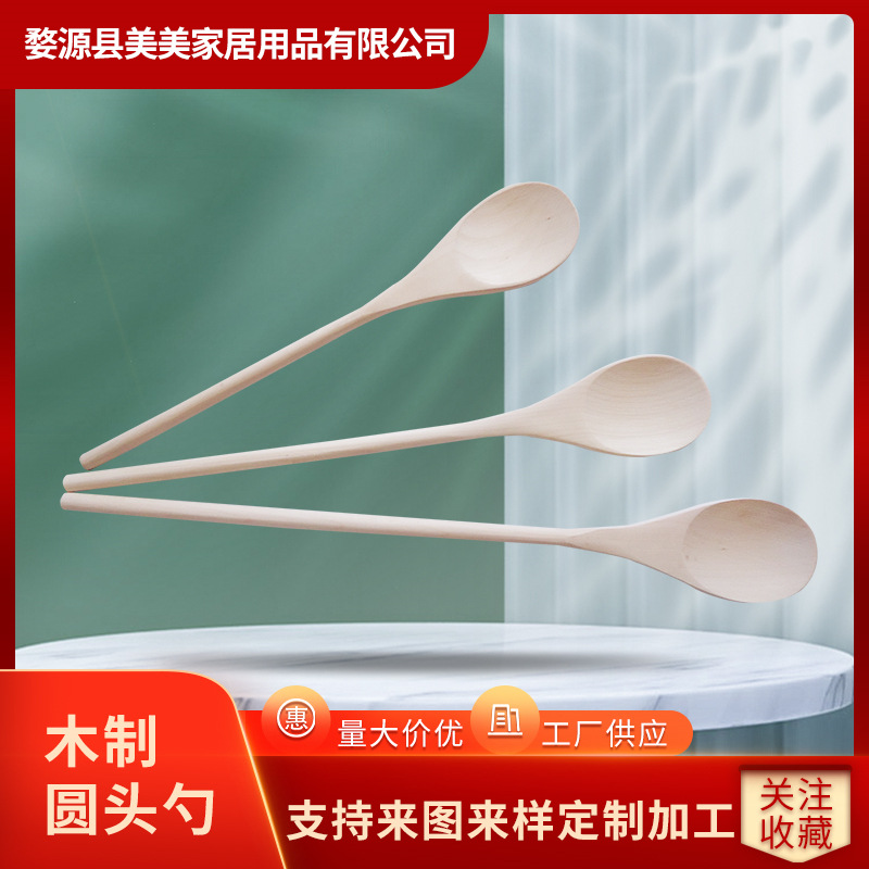 木製丸頭スプーン、長柄サラダスプーン、木製調理器具、ミキシングスティック、ミルクティー、ミルク、蜂蜜用木製スプーンをメーカーから供給