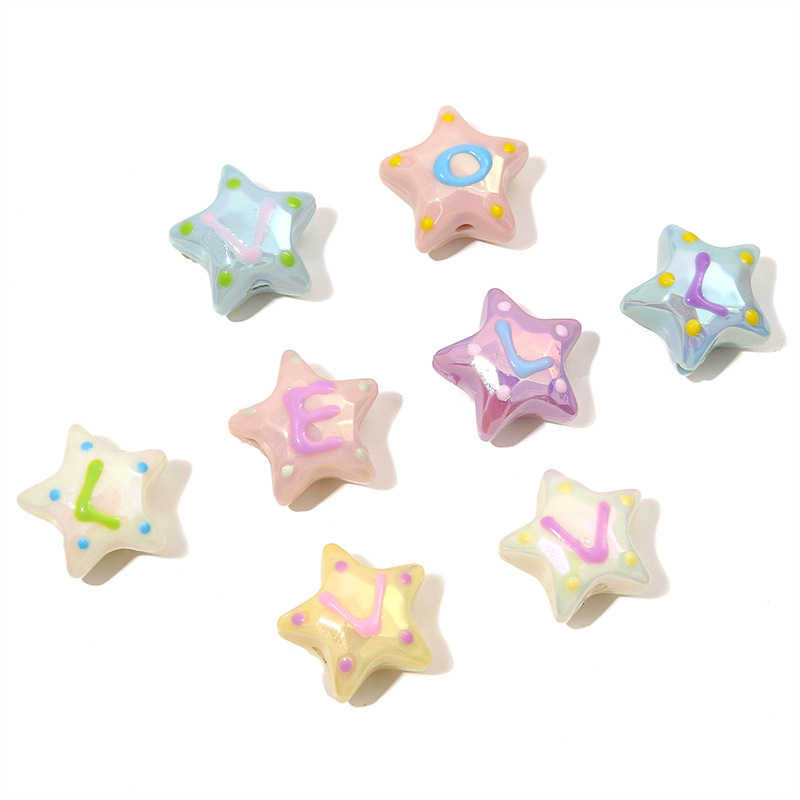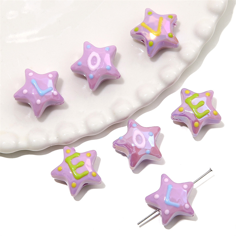 亚克力喷漆滴油大孔五角星手工diy串珠子手链饰品手机链珠子配件